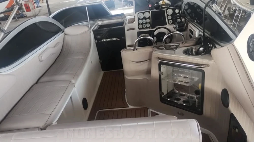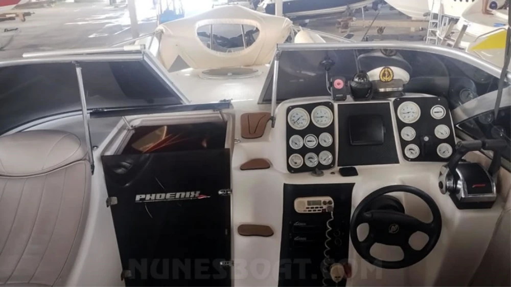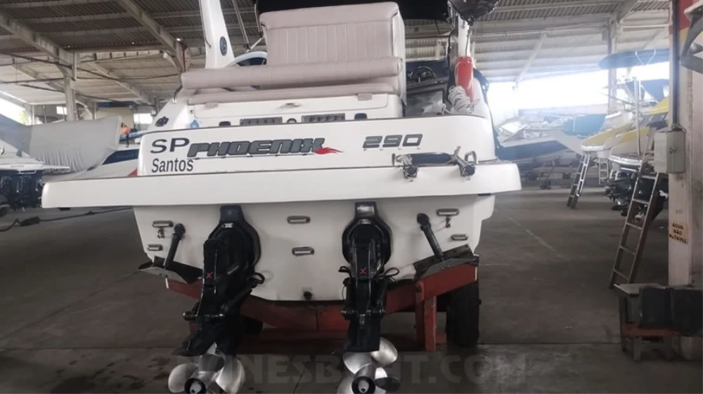 CÓD 4380 PHOENIX 290 FULL: 2013, 2 x mercruiser 1.7 120hp, diesel, 28 top e 18 cruzeiro, rabetas bravo three, âncora, baterias, bomba de água doce, bomba de porão, bússola, buzina, capota, carreta de encalhe, (13) coletes, (4) defensas, direção hidráulica, extintor, farol, flap hidráulico, geladeira, gps c/plotter, inversor, micro-ondas, rádio vhf, sanitário elétrico, som, teka eva, tomada de cais, (2) ventilador... F/c. Nunes (13)99706-0395