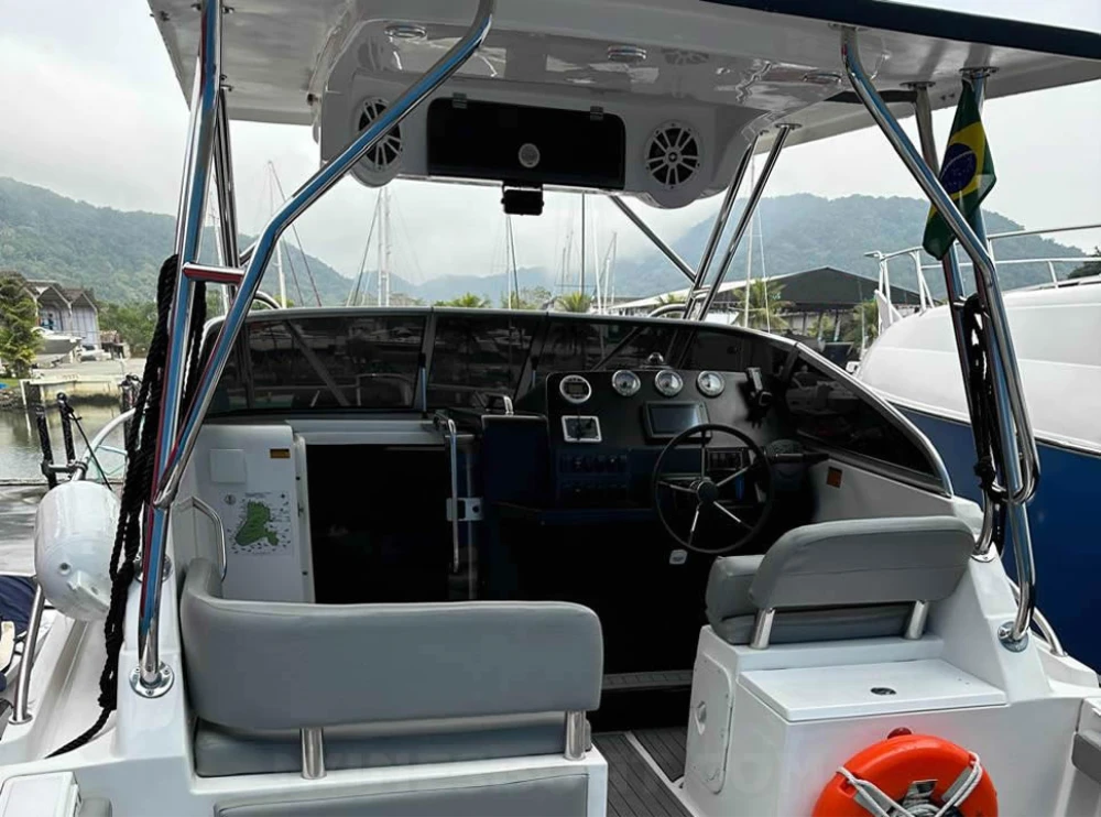 CÓD 4200 FISHING 280 WA: 2014, 2 x evinrude 225hp, gasolina, 600hs de uso, 38 top e 26 cruzeiro, âncora, antena de vhf, baterias, bomba de água doce, (2) bombas de porão, bússola, buzina, capota rígida, carreta de encalhe, chuveiro de popa, (10) coletes, direção hidráulica, extintores, farol, geladeira, gps c/plotter, guincho elétrico, rádio vhf e ssb, sanitário elétrico, som, teka original, (2) ventiladores... F/c. Nunes (13)99706-0395