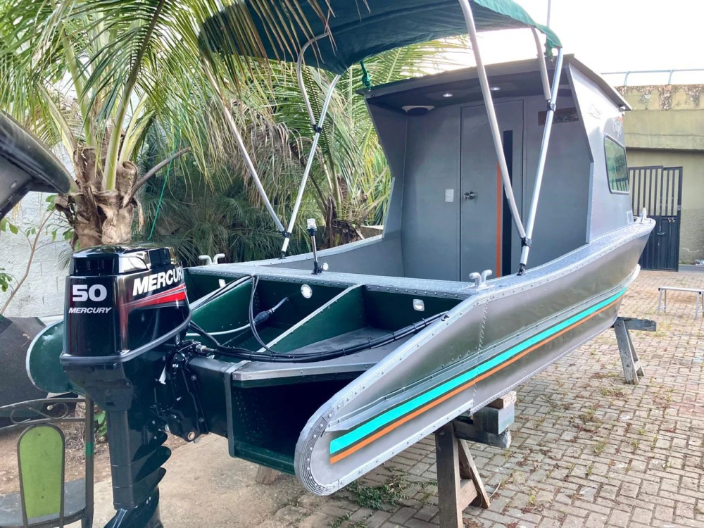 LANCHA MALLOY FISHER 230 - Um casco multifuncional em duralumínio para fins de patrulhamento ou pesca esportiva e lazer em rios e lagos. Cabine confortável com isolamento térmico, poltronas reclináveis, porta de acesso à proa e popa, luminárias em leds e farol de busca são algumas das características desse barco Malloy. Motorização indicada: popa de 50 à 115 HP. Todas as embarcações Malloy são feitas sob encomenda e personalizadas conforme as necessidades do cliente. Tratar com Mara pelo WhatsApp 82 99153 3096. FOTOS ILUSTRATIVAS.