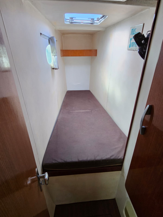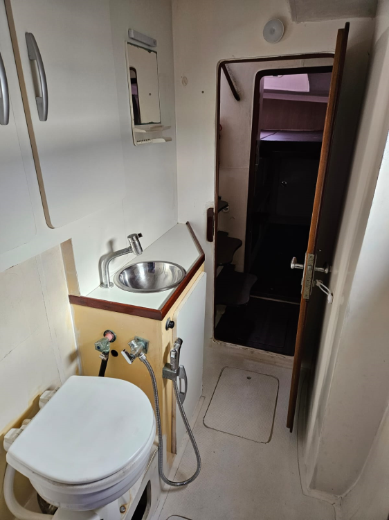 OFFICE BOAT VENDE: *CATAMARÃ BV 36 – ANO 2016* *ESPECIFICAÇÕES TÉCNICAS* Construtor: Bate Vento Sailmaker & Catamarans Área de Navegação:Mar Aberto Comprimento Total: 11,40 m Boca: 5,95 m Calado Moldado de Projeto: 0,60 m Material Casco e convés: Espuma rígida de PVC e fibra de vidro Anteparas: madeira e fibra de vidro Casaria: fibra de vidro e espuma rígida (composite - foam cored) Capacidade de óleo diesel: 200 L Capacidade de água doce: 400 L Tripulação: 02 em viagens com pernoite/ 01 em passeios curta duração Passageiros: 09 em viagens com pernoite/ 16 em passeios de curta duração *MOTORIZAÇÃO* 02 Motores – Yanmar 3YM30 - SD25 Potência: 29 HP Revisão feita em abril/2024: Troca de filtros, óleo e correias. Retentores, rotores e rolamento da bomba de água salgada *VELARIA / MASTREAÇÃO* Vela mestra dacron 9 OZ importado Vela buja dacron 7 oz importado com capa de proteção UV Genoa dancron 6 OZ importada com capa de proteção UV Mastro MANOTAÇO 15 m com diamante e suporte garlindéu Retranca MANOTAÇO com garlindéu e mordedores de esteira e rizes 01 Catraca NAUTOS # 44 01 Catraca NAUTOS # 40 02 CatracaS NAUTOS # 32 02 manicacas 250 mm Enrolador NAUTOS # 1 Buja para cabo inox 8 mm Enrolador NAUTOS # 1.5 Genoa para cabo inox 8mm *ELETRÔNICOS* GPS / Plotter / Sonda Raymarine mod. A 78 Piloto automático eletronico raymarine 12v ev100 roda leme Ecosonda odômetro digital raymarine mod. i40 Agulha magnética Buzina manual Anemometro analógico raymarine mod i40 wind Rádio VHF COBRA MARINE DSC *ELÉTRICA* 04 Painel solar X 155W 01 Painel solar X 450W Half-Cell monocristalino 04 Baterias 220 amp cada Inversor Tensão 4000w 12v Para 110v Transformador Conversor 1 boiler 20 l Quadro 12v refeito em agosto 2021 *HIDRÁULICA* 05 Bombas, sendo 04 elétricas e 01 manual 02 filtros separadores de água e óleo Vasos sanitários marítimos Jabsco (01 elétrico e 01 manual) *ANCORAGEM / FUNDEIO* Guinchos elétrico BADA - 1000w (jan/2024) 01 Ancora Roka 25 kg 50 m Corrente aço galvanizada a fogo (jan/24) + 50 m Amarra principal 01 Ancora Bruce 15 kg 25 m Corrente + 30 m Amarra principal 07 defensas *SALVATAGEM / APOIO* Bote Remar 2,2m fundo rígido Motor Mercury 5 HP 01 Bóia salva-vida com retinida – Classe I 01 Bóia salva-vida com dispositivo de iluminação de auto-ativação – Classe I 06 Coletes Grandes – Classe I 08 Coletes Grandes – Classe II 02 Extintores CO2 - 4 kg 01 Extintor CO2 - 1 kg *INFORMAÇÕES ADICIONAIS* Ar condicionado portátil 12.000 btus Geladeira Elber RE 120litros 12 V Freezer Elber 80 litros FRi 12 V Fogão 04 bocas com forno Fechamento completo do cockpit Vinx em 2023 02 Trampolins com capas Vinx em 2023 02 escadas retráteis na popa Rádio com CD/PenDrive/Bluetooth, com 4 caixas e som (2 internas e 2 externas) Iluminação de cortesia no cockpit *ENCONTRA-SE ATUALMENTE EM PARATY - RJ* Pronto pra dar continuidade navegando pela costa brasileira como estavam fazendo a 4 anos... Venha dar continuidade e desfrute de uma vida melhor velejando com confiança, conforto e segurança!!