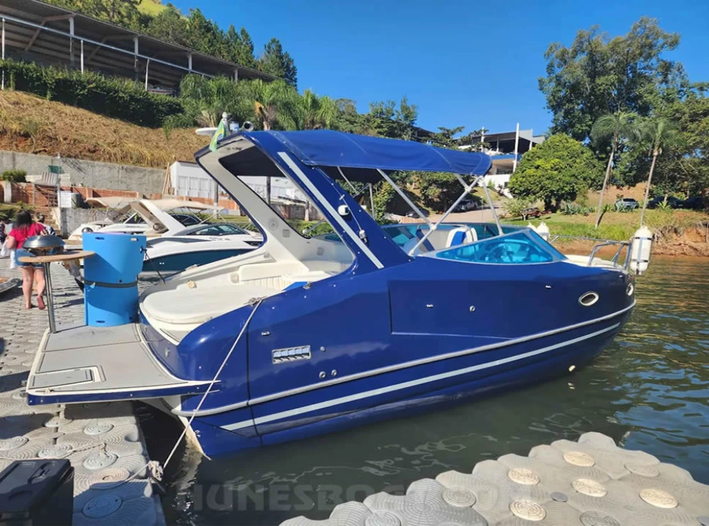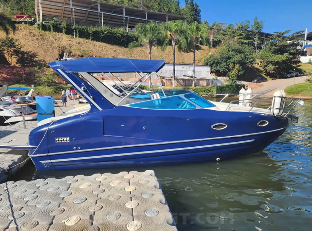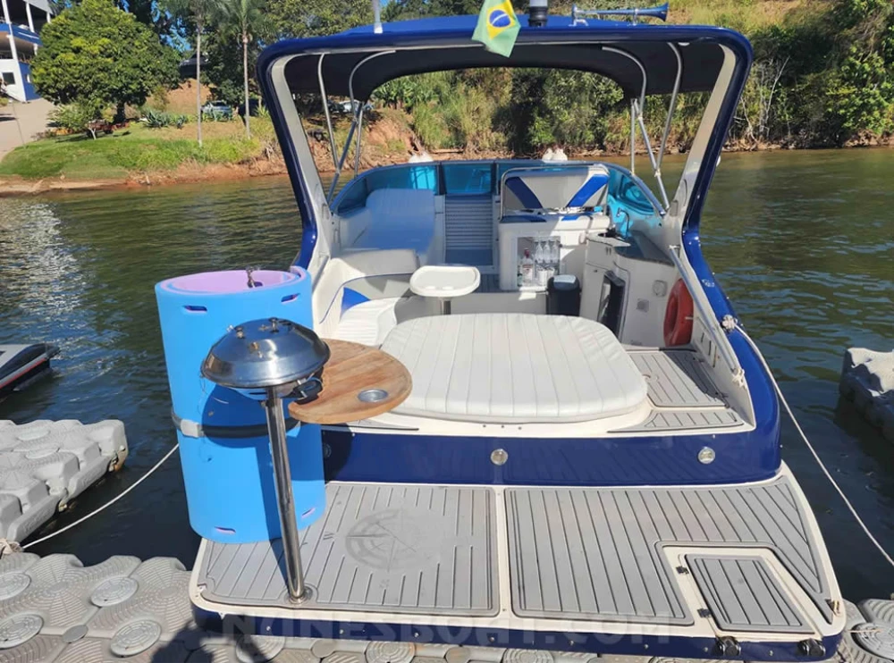 CÓD 4530 ALTERNATIVA PHOENIX 30: modelo 870 cabin, 2012, volvo penta 300hp, 250hs de uso, 32 top e 20 cruzeiro, rabeta vp dp, âncora, (2) baterias moura 150amp, bomba de água doce, (2) bombas de porão, (3) camas pernoite p/6 pessoas, capota c/fechamento frontal e lateral, carreta de encalhe, churrasqueira inox, chuveiro de popa, coletes, cristaleira, (4) defensas, extintores, farol robotizado, guincho elétrico, luz subaquática azul e branca, rádio vhf, sanitário elétrico, som pionner e autofalantes jbl c/2 subs e processador, teka eva, tomada de cais, tv 12v, (3) ventiladores... F/c. Nunes (13)99706-0395