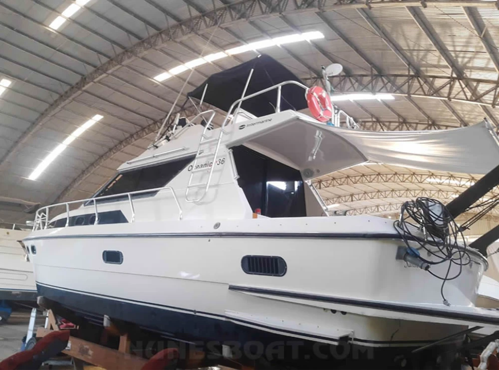 CÓD 6102 OCEANIC 36: plus, estaleiro intermarine, 1991, 2 x mb 366 315hp, diesel, pé de galinha, reversor zf bw40 1 ½, 30 top e 20 cruzeiro, âncora, antena de vhf, (2) ar condicionado, boiler, bomba de água doce, (3) bombas de porão, bússola, capota c/fechamento total, carreta de encalhe, churrasqueira, chuveiro de popa, (11) coletes, (3) defensas, direção hidráulica, extintores, farol, flap hidráulico, foguetes, fogão á gas, geladeira 12v, gerador onan 8kva, gps c/plotter, guincho elétrico, inversor, luz subaquática, micro-ondas, rádio vhf, sanitário elétrico, som, (2) tvs 21” e 32” , tomada de cais, (3) ventiladores... F/c. Nunes (13)99706-0395