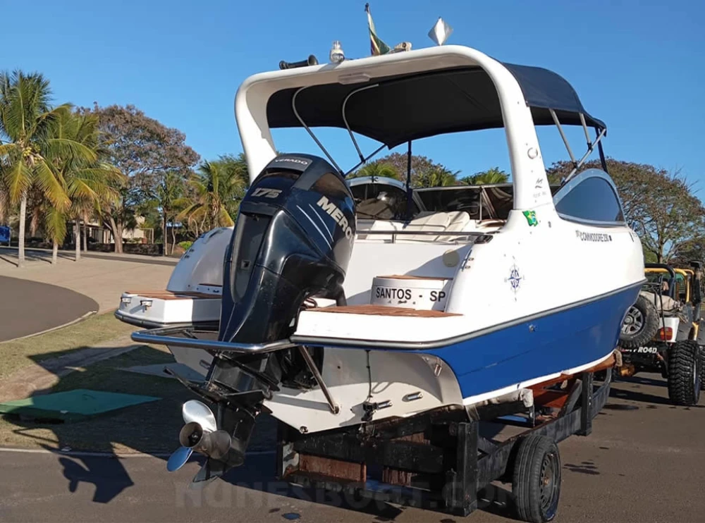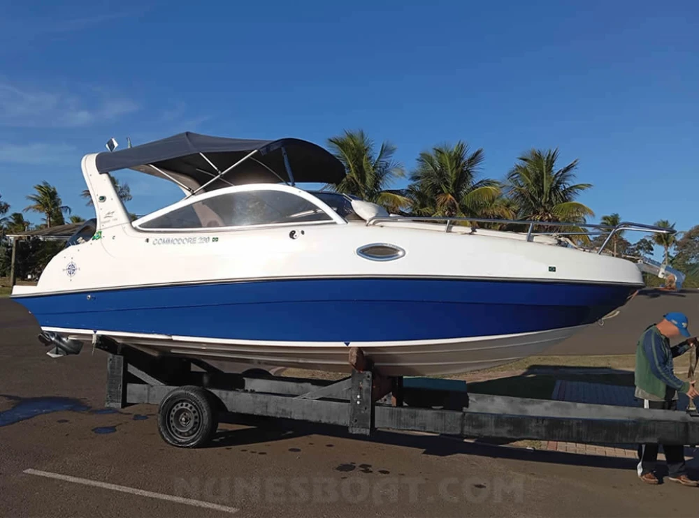 CÓD 1130 COMMODORE 230: mariner boats, 2010, mercury verado 4t 175hp, gasolina, 407hs de uso, 48 top e 36 cruzeiro, âncora, antena de vhf, bateria moura, bomba de água doce, bomba de porão, bússola, buzina, capota c/fechamento total nova, carreta de encalhe, churrasqueira, (2) chuveiro na popa, coletes, (2) defensas, direção hidráulica, extintor, (2) geleiras, guincho elétrico, (2) pias, rádio vhf, sanitário comum, som c/bluetooth e rádio fm, sonda, strobolight, pia, teka eva... F/c. Nunes (13)99706-0395