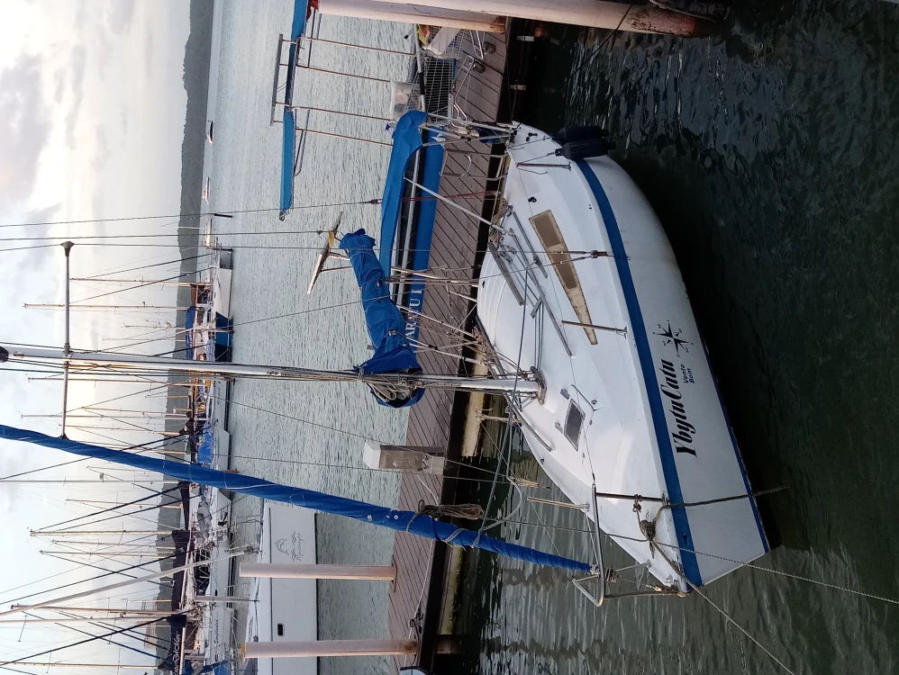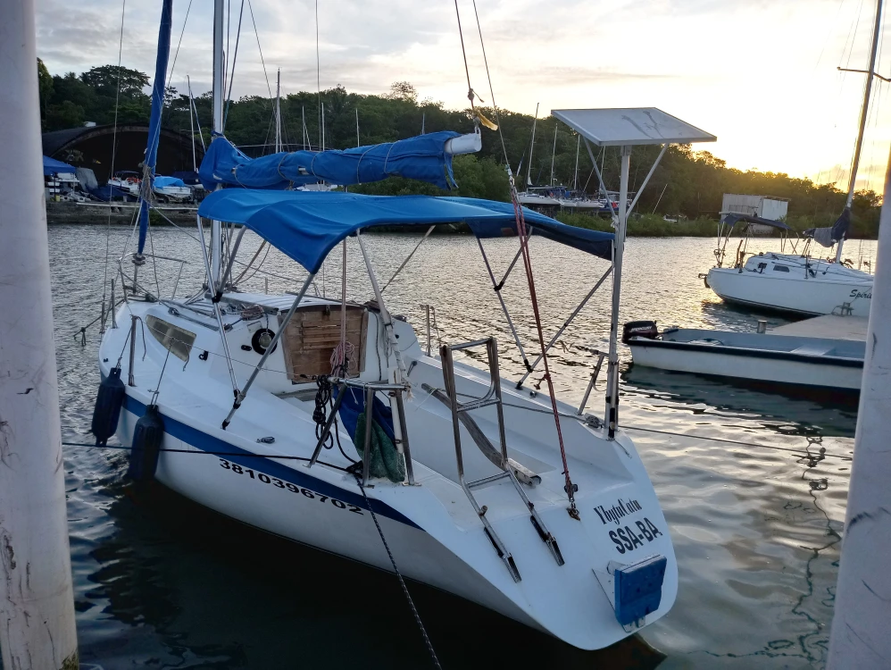 velas grande com capa azul anti-uv, Genoa 2 com protetor uv, enrolador genoa, bússola, gennaker, balão, motor popa 8hp rabeta longa, sanitário químico, bimini, ancora, salvavidas. painel solar.