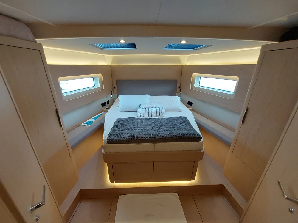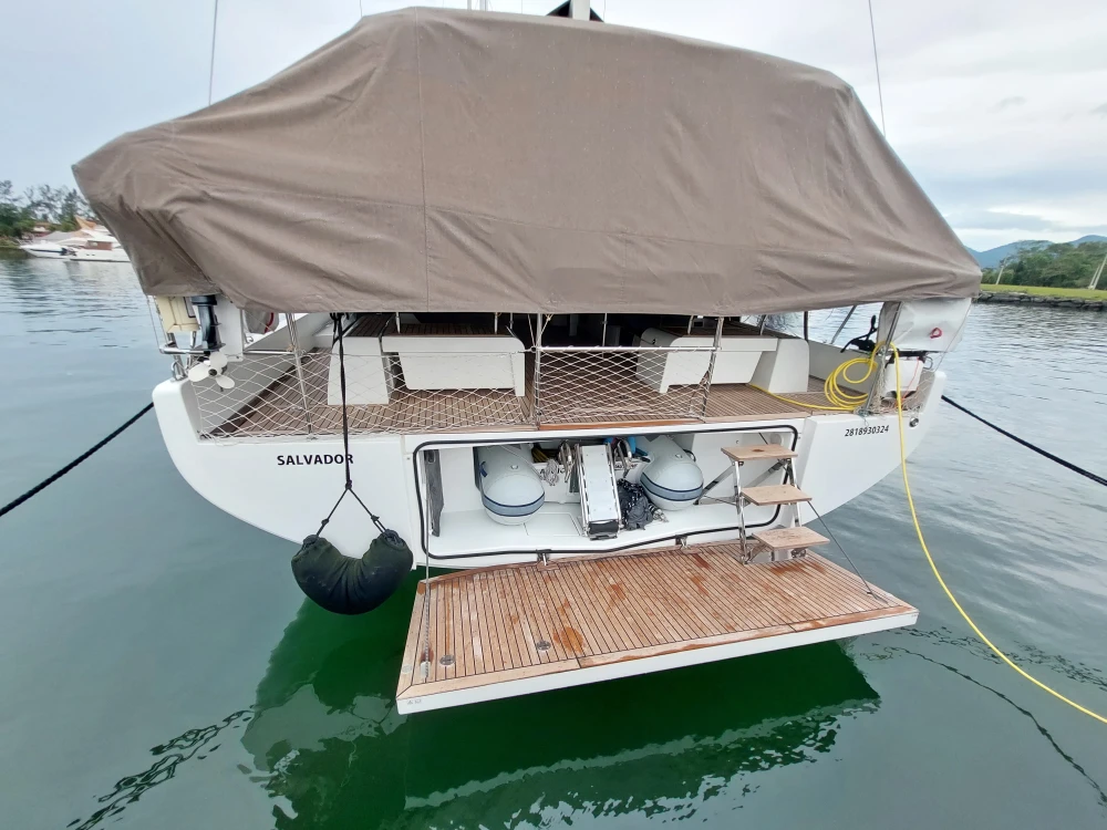 Motor Yanmar 110 hp, 600 horas de uso; Gerador com 230 horas de uso; Bote; Motor do bote; 1 vela azul com o cavalo; 1 genoa extra; 1 genoa de tempestade; Hélice; Âncora; Dessalinizador; 4 placas solares; Cabine marinheiro completa; Kit tvs e micro ondas; Repetidor interno; Catracas elétricas; Cunho retrátil; Kit fácil tira e bota o bote; Kit baterias extra; Targa retrátil; Kit ombrelone e almofadas na proa; Capa de cobertura total (Tlaloc); Motor e bote (nunca usados); Enxoval completo; Pintura de fundo julho 24; Kit vela auto cambante e vela normal (nunca usado). Cockpit aperfeiçoado dotado de auxilios à navegação, o que chamamos de Easy Sailing; Sobre o convés e especialmente em torno do cockpit, tomou-se o cuidado para que nada bloqueie a circulação da tripulação; 3 cabines; 3 banheiros; Salão em forma de U com mesa grande para 6 pessoas; Cozinha em forma de C equipada com: geladeira, fogão com 3 bocas, forno, pia, armazenamento e bancada grande.