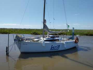 Veleiro Krill: - Micro Racer 19 pés. - Ano 1987. - comprimento 5,5 m, boca de 2,4 m. - Quilha retrátil, calado mínimo 30 cm. Baixada, 1,35 m. - Motor de popa 2t Hidea 5 Hp novo, rabeta longa. 7 meses de uso, na garantia. Tanque interno de 2,4 e externo de 12 litros. - Vela mestra em bom estado com slides e 2 forra de rizo. - 2 velas Genoa c garruncho, uma excelente e outra em boa condição. - Fogão 2 bocas. - Extintor de incêndio. - 3 Salva vidas. - 4 Defensas. - 1 âncora Danforth 3,5 kg. - 1 âncora fatecha 1 Kg - Lona para o barco. - Capa p cana do leme. - Capa p a vela mestra qdo baixada na retranca. - Escada de Popa. - Bóia. - Retinida. - Bateria 12 V. - Luzes de navegação Led. - Luz de fundeio Led. - Luz de paiol. - Bússola contest Plastimo. - Placa solar. - Controlador de carga. - Rádio VHF YAESU VXM 100. - Rádio AM/FM. - Ecobatimetro Humminbird Wide 128. - Piloto automático Autohelm 1000 Nautec. - Bomba de porão. - Convés pintado em janeiro de 2023. - Venenosa em fevereiro de 2023. - Tudo instalado e funcionando perfeitamente. - R$ 48.000,00. - Localização: Clube Veleiros Saldanha da Gama - Pelotas RS. - Documentação em dia. - Contato do Proprietário: 53 991124524 Eduardo.