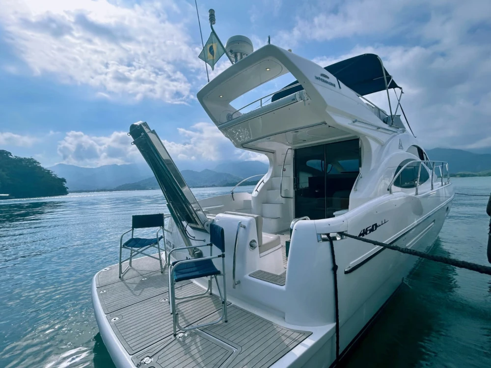 MOTOR: Volvo tand 74 480 CV. 2100 hrs feitos cabeçotes com 2000 horas; Gerador onan 9.5 kva.1.800hrs; ACESSÓRIOS E ELETRÔNICOS: 2 (dois) ar condicionado de 16.000 btu cada; Passarela hidráulica; Pintura no gel original; Inversor xantrex 3.000; Carregador usina 200 servico; Carregador usina 80 som; Tv smart; Sound bar; Piloto. Automatico; Geladeira e congelador; Geladeira popa; Forno elétrico; Fogão elétrico; Microondas; Gps; Rádio vhf. REVIÇÕES FEITAS NOS ÚLTIMOS 6 MESES: Tirado cabeçotes para análise dos blocos dos motores , os mesmos se encontram perfeitos sem folga ,brunimento das camisas dos pistões sem desgastes. Feito 2 cabeçotes novos; 2 turbinas novas; Bicos injetores revisados; Injetoras revisadas; Arranque revisado; Alternadores revisados; Injetora e bicos do gerador revisados; Bomba água salgada gerador nova original; 4 baterias 100 dos motores novas; 4 baterias estacionárias serviço 100 a novas; 1 bateria som; 1 bateria gerador; Guincho revisado; Ar condicionados revisados; Motor plataforma revisado; 1 reversor trocado discos o segundo perfeito; Selo mecânico revisado; Revisão e troca de chicotes dos motores