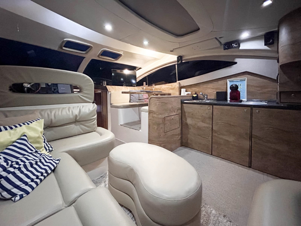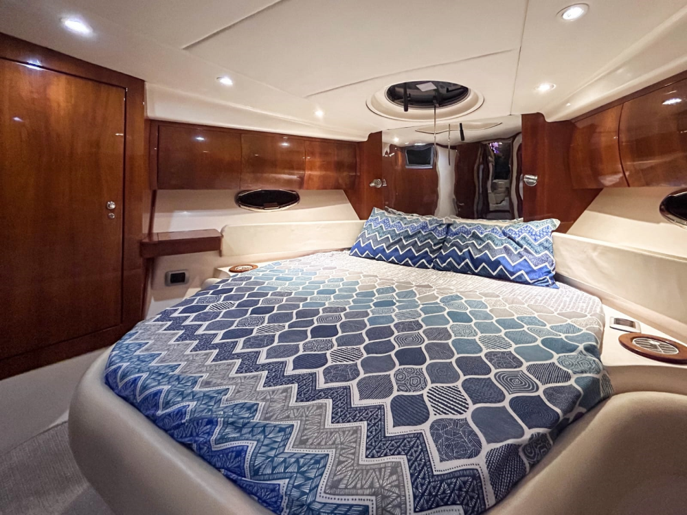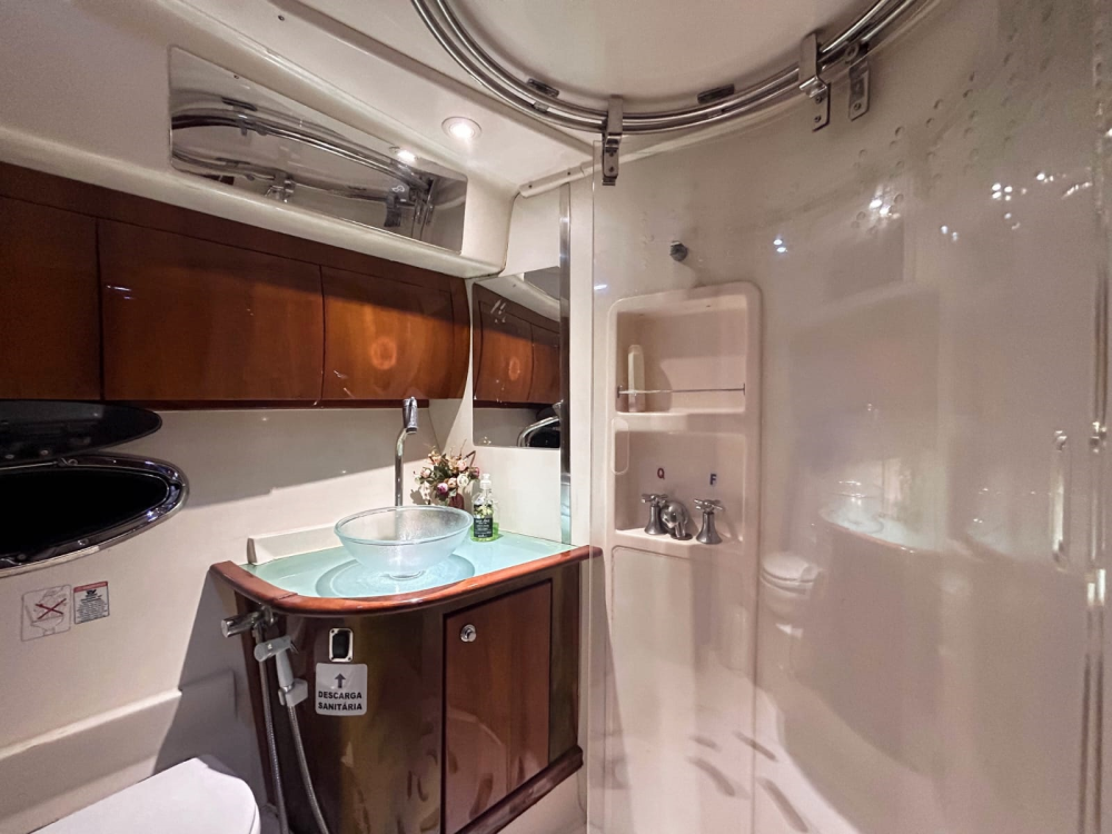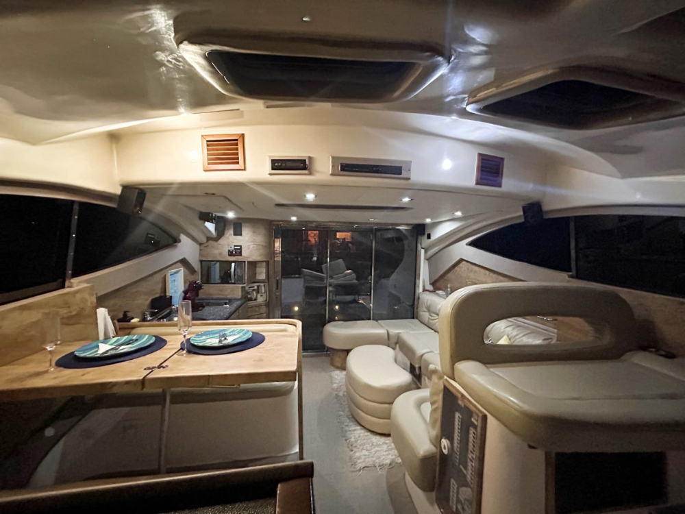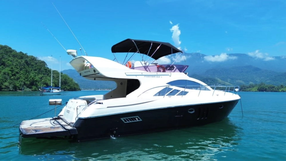 LAYOUT: Fly, 3 camarotes e 2 banheiros sendo 1 suíte e outro semi-suíte; MOTORES: Cummins 8.3, 480hp, reversores zf 305, pé de galinha; ELETRÕNICOS E ECESSÓRIOS: Gerador onan; 3 baterias 185 estacionárias, 2 baterias motores 150ª, 1bateria bowtruste e guincho 150ª; Sistema de extintor central sea fire automático na casa de máquinas com laudo março 25; 3 comandos eletrônicos ( FlyBridge, cabine, popa); Flaps inox; Plataforma hidráulica; Inversor de bateria 3.000; Carregador de baterias 200ª; Tranformador de energia 5.000 w; Bowthruster; Guincho ancora quick; 2 vhfs; Câmera casa de máquina e popa ; Boiler elétrico; 4 ar condicionados; 1 bomba ar condicionado silente; 2 geladeiras; 1 frezzer ; Tv smart 32"micro-ondas; Cafeteira elétrica; Som Bluetooth; Home; Fogão elétrico 2 bocas; 2 exaustores casa de maquinas; 7 bombas porão , em três compartimentos ; Tapetes kapazi em toda área interna. Obs.: Elétrica e eletrônicos revisados e alguns substituídos por novos. Possui marcadores no fly e salão, analógicos e digitais ,os analógicos revisados na terramar. Motor retificado geral com 840 horas , trocados: bronzinas,bicos, injetoras, 12 kits cilindros com pistões, Aneis e camisas, eixos virabrequim stand ,buchas de bielas ,cabeçotes, bombas agua doce , bombas de oleo, correias,tudo novo original cummins. Março 2025: bombas de água salgada revisadas com rotores novos importados; Turbinas novas com boca de fogo inox nova; After cooler , trocadores de água e muflas testados e limpos; Reversores zf 305 eletronicos instalados em 2020; Outubro / novembro 2024: Eixos, buchas e helices person, lemes, anoldos colocados novos; Pintura de fundo, Polimento geral; Compartimento do marinheiro retirada total de tudo que era madeira e refeito em divinicel; Teka popa e plataforma nova; Parabrisas e vidros laterais laminados estão sendo fabricados para instalar em setembro. Esta sendo feito: Pintura de fundo; Troca de buxas e linha de eixo; Polimento geral; Revisão nos pistões da plataforma e flaps; Troca dos vidros; para-brisa e laterais. A lancha vai para água no dia 15/11.