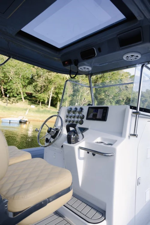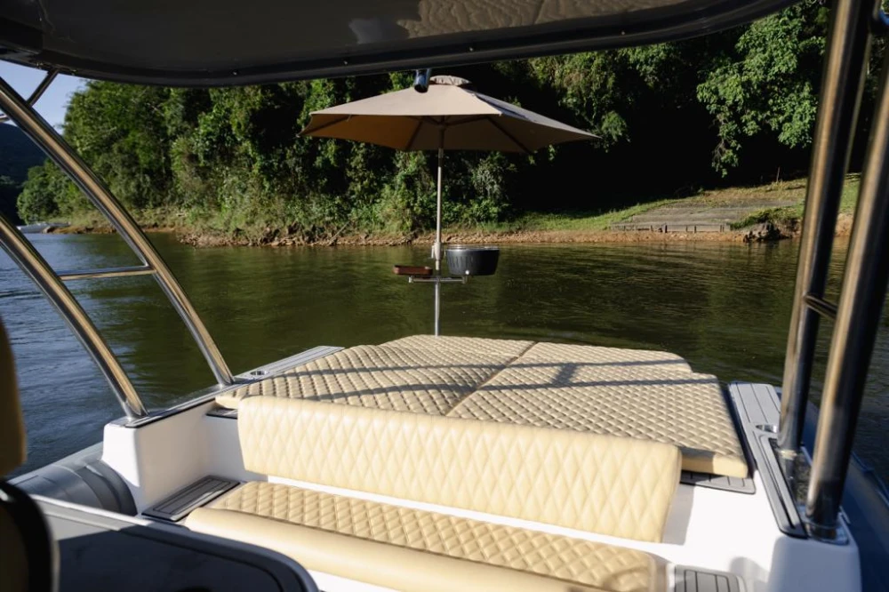 Versão Lazer Luxo Equipamento com 2 motores a DieseL Ano: 2018/2019 Vários up grades feitos em 2023: Up grade na pintura, tapeçaria, elétrica, instalações, GPS, som, guincho elétrico, luminárias e luz sub aquática, polimento de todas as peças em aço inox, polimento do casco e personalizações de peças e bagageiros em gel coat cinza Barco nota 11 de conservação com revisão total dos motores, com nota fiscal de tudo! DADOS TÉCNICOS: Motorização: parelha Mercruiser Diesel V6 3.0 com 260 HP cada! Total 520 cavalos de potência Velocidade de top: 42 knots Velocidade de cruzeiro: 30 knots Consumo Cruzeiro: 36 lth a parelha Autonomia: 17 horas Alcance de navegação: 500 milhas náuticas ACESSÓRIOS: 1. GPS Garmin 10 polegadas com sonda de casco e sensor de profundidade clearVü/ 2. Rádio VHF com antena de 9db de 2,50mts 3. Defletor de radar 4. Kit de som com amplificador de 1.000 watts + subwooffer + auto-falantes marinizados 5. Guincho elétrico totalmente com corrente calibrada galvanizada, destorcedor e âncora em aço inox de 7.5 kg 6. Solário de proa com amplo bagageiro 7. Banco duplo ice box na frente do console 8. Banheiro completo com wc elétrico e ducha higiênica 9. Lixeira grande de convés embutida 10. Cobertura Hard top com teto solar 11. Par de faróis de milha super potente com 1.200 lúmen 12. Luz strobo 13. Luzes sub aquáticas na cor azul 14. Luzes de convés na cor azul 15. Tapeçaria bege personalizada 16. Up grade dos bancos do piloto individuais com amortecedores em aço inox para rebatimento, pilotagem em sentado ou em pé 17. Solário quádruplo na popa 18. Revestimento em Eva em todo convés, proa e plataforma de popa 19. Escada mini dive em aço inox 20. Up grade do sistema de bombas de porão e saídas de água 21. Porta copos todos em aço inox 22. Dois bagageiros de popa adicionais para guardar objetos molhados 23. Tanque de água doce com capacidade para 150 litros + chuveiro de popa + ducha e pia no banheiro + pia no espaço gourmet + ducha no paiol de âncora para adoçar o guincho 24. Espaço gourmet com amplo ice box + cristaleira e pia com torneira escamoteavel e também bancada de apoio 25. Carreta rodo encalhe super reforçada, em aço galvanizado a fogo e pintura adicional, 2 eixos com bucha e 04 pneus de caminhonete novos, engate rápido para reboque é rodízio frontal super reforçado. 26. Tomada USB dupla no console e adicional no solário de popa 27. Dois ganchos em aço inox para puxar esqui 28. Kit gourmet sendo: churrasqueira alemã de 42cm Lotusgrill Grill Sem Fumaça Carvão Portátil, Pilha + Usb, suporte super reforçado em aço inox com gamela de corte encaixe para um ombrelone australiano em tecido anti UV com raio de 3m