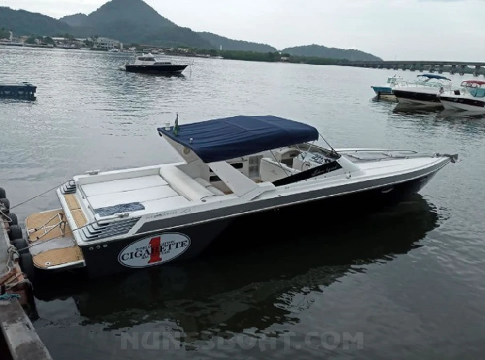 CÓD 6254 CIGARETTE 36: estaleiro intermarine, 1988, 2 x vp aqad41 200hp, diesel, rabetas vp 290 dp, 915hs de uso, 37 top e 25 cruzeiro, âncora, antena de vhf, (2) baterias, bomba de água doce, (2) bombas de porão, bússola, buzina, capota, carreta de encalhe, cd player, chuveiro, (9) coletes, defletor de radar, direção hidráulica, (2) extintores, guincho elétrico, geleira, radio vhf, sanitário elétrico, som, strobolight... F/c. Nunes (13)99706-0395