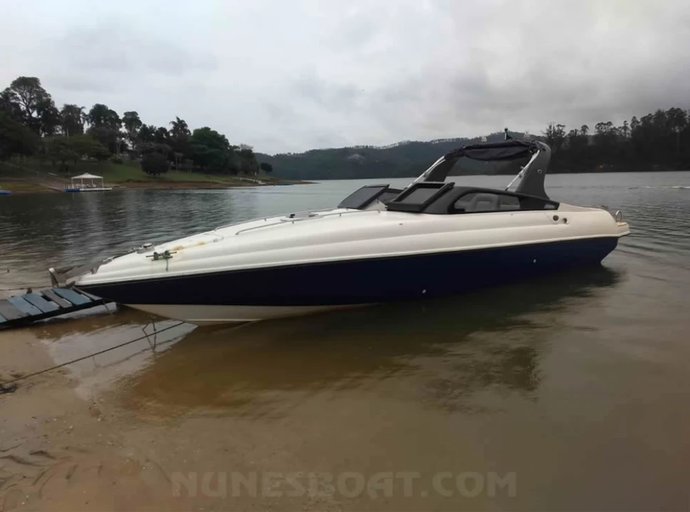CÓD 4700 ALFA 30: ecomariner, 2008, mercruiser 350mag mpi 5.7 300hp, gasolina, 600hs de uso, 35 top e 22 cruzeiro, rabeta bravo three, âncora, bateria, bomba de água doce, (2) bombas de porão, bússola, capota, carreta de encalhe, churrasqueira, chuveiro de popa, (12) coletes, (4) defensas, direção hidráulica, extintor, farol, guincho elétrico, sanitário elétrico, som, teka eva... ... F/c. Nunes (13)99706-0395