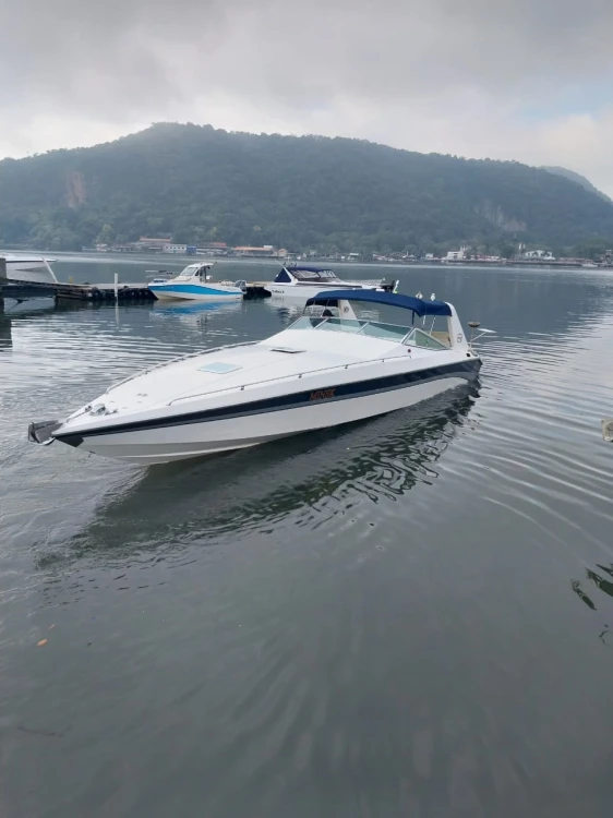 02 motores VOLVO AQAD41 - DIESEL - 20/25lts hora cada motor em velocidade cruzeiro (26knots) e 3.000rpm PARABRISA FRONTAL DE VIDRO AR-CONDICIONADO GERADOR SWELL - DIESEL FRIGOBAR MICROONDAS SMART TV SOM BOSS MARINIZADO 2 MODULOS COM 1 SUBWOOFER MARINIZADO e 04 FALANTES 6X9 CARREGADOR e INVERSOR BANCO DE BATERIAS COM 04 BATERIAS - na garantia 2 BOMBAS DE PORÃO BOMBA DE AGUA DOCE SANITARIO ELETRICO ANCORA com GUINCHO QUICK com 40ms de corrente gauvanizada ESTOFADOS e TOLDOS NOVOS, feitos em MATERIAL NAUTICO PRÓPRIO, em junho 2024, investido R$13mil FECHAMENTO TOTAL PROA, LATERAIS E POPA SALVATAGEM completa DEFENSAS RADIO VHF STROBO DEFLETOR DE RADAR GPS GARMIN TOMADA DE CAIS ESCADA DE ACESSO AGUA/POPA TODAS AS LAMPADAS EM LED