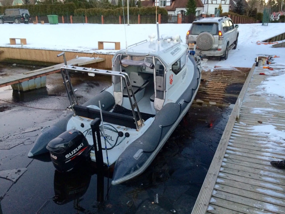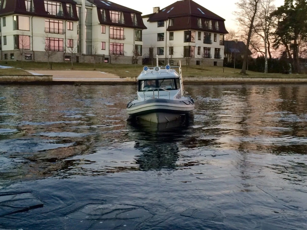 LOW USED!!! PERFECT CONDITION!!! Length: 6.45 m Width: 2.45 m Cockpit Length: 3.05 m Cockpit Width: 1.44 m Weight: 620 kg Capacity: 1500 kg Engine Power: 115–200 HP Fuel Tank: 290 L Max Speed: up to 110 km/h (approximately 60 knots) Cruising Speed: 75-90 km/h Balloon Diameter: 0.5 m, 5 compartments made of PVC, providing additional safety in case of flooding. CE Category: C (for sea and coastal waters) Max Passengers: up to 9 people Features and Equipment: Webasto heating system VHF/FM Radio Standard Horizon Matrix GX 2200 Humminbird 1198CX SI Combo with 360° imaging and side scan sonar Stainless steel diving ladder Running and transport covers Spotlights, horn, and anchor This boat is perfect for fishing, leisure, or professional use. It is stable, fast, and has great load capacity while remaining lightweight. The boat is also fully equipped for comfort and safety on the water. Price: 32,000 € Included: trailer, covers, spotlights, horn, anchor. Delivery available to any location!