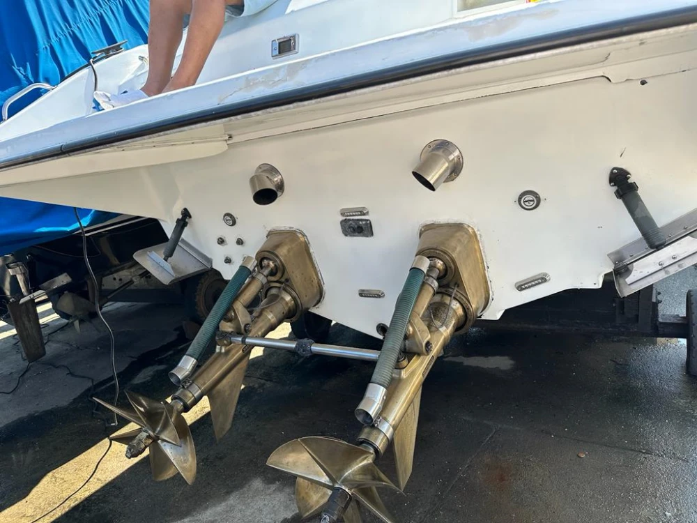 Real 40 Offshore ano 1992 – 02 Mercedes 366 com 315 hp cada, diesel, propulsão Mondrive (hélice de superfície) com 400 hs aprox.., GPS novo, Guincho elétrico, Farol com controle remoto, Strobo, Luzes subaquáticas, Flap´s, Tv, Som, Radio vhf, Carregador de baterias, Tomada de cais, inversor, Ventiladores, Água pressurizada com 02 duchas na Popa e 01 no WC, Tapete no interior e no cockpit, Capota, Capa de cobertura, Carreta com pneus maciços,03 berços e cambão, barco bem conservado ! Preço R$ 170.000,00 só venda, mas escuto proposta !!