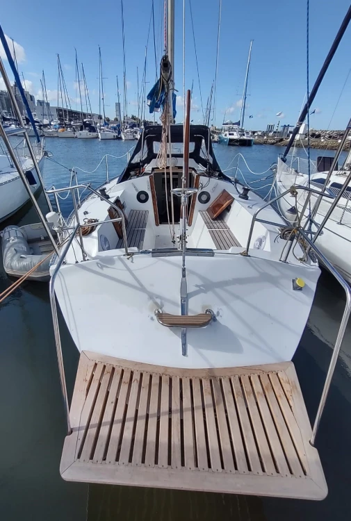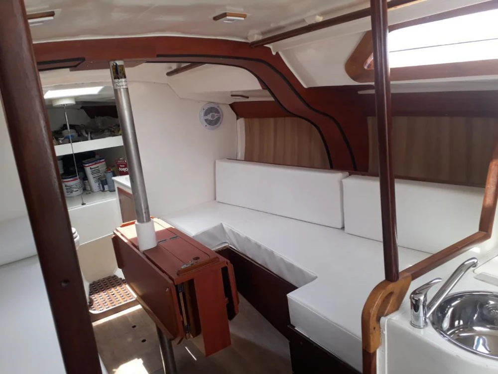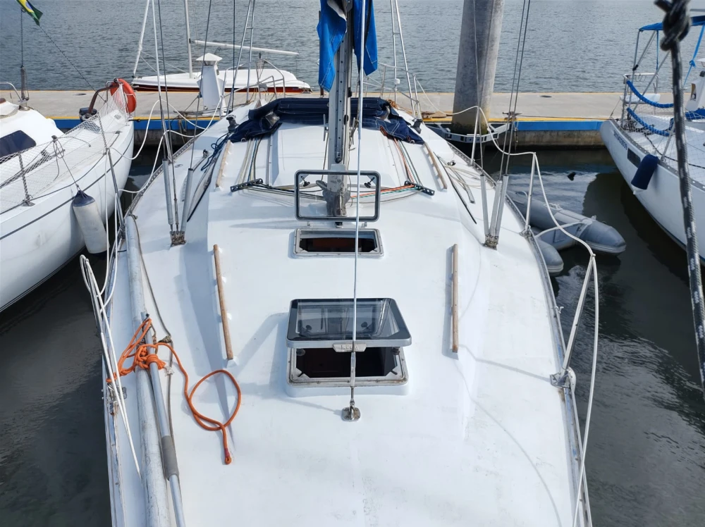 Veleiro Francês - Veio da França, atravessou atlântico até a África e voltou. Barco extremante resistente, produção artesanal, construção rigorosa para ser liberado a navegar na França. Construído apenas 9 embarcações. Construído na França em 1978 e reformado e nacionalizado no Brasil em 1987 *ESPECIFICAÇÕES TÉCNICAS* Casco: Fibra de Vidro Calado: 1,30m Capacidade de passageiros: 1 + 3 Comprimento: 9,15 m Boca: 3,23 m Cana de Leme *LAYOUT* 02 cabines Sala / Cozinha *MOTORIZAÇÃO*: Motor Yanmar 29 HP Zero, sem uso *VELAS* Vela Mestra Vela Genoa Vela de Competição Balão Vela de Tempestade Pau de Spinnaker Enrolador de Genoa 04 Catracas Harken (sendo 02 self sailing) *ELETRÔNICOS* Todos zeros, sem uso Piloto Automático SIMRAD TP32 Radar Furuno Antena de Radar Kit Som com Alto-falante Marinizado Náutico Velex *ELÉTRICA* Elétrica totalmente zero (2024) Placa Solar Bateria Moura Boiler (aquecimento motor) *ANCORAGEM / FUNDEIO* Guincho elétrico (zero, sem uso) 03 âncoras (sendo 02 francesas) Defensas *SALVATAGEM / APOIO* Bote de Apoio (não acompanha motor) Balsa Salva Vidas (necessitando revisão) *INFORMAÇÕES ADICIONAIS* Fogão novo Geladeira Banheiro Manual Biruta Refletor de Radar Estofados todos novos (salas e quartos) Pintura de fundo: janeiro/2021 Revisão Estaiamento: setembro/2021 Reforma finalizada em 2024.