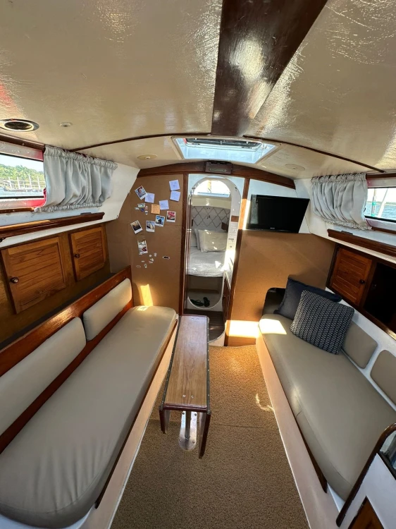 *ESPECIFICAÇÕES TÉCNICAS* Veleiro oceânico Inglês importado, só montado o motor no Brasil Projetista: Ron Holad Pé Direito: 1,80 m 30 pés = 9,2 metros Calado = 1,8 metros Tanque de água doce 220 litros Tanque de combustível diesel 110 litros Bandeira Brasileira *MOTORIZAÇÃO* Motor control original do veleiro Selo mecânico (dez/ 2022) Filtro racor de diesel *VELARIA / FERRAGENS* Vela mestra 120% (NECESSITA COSTURAR) Vela genoa com capa protetora UV. 100% Enrolador de vela genoa marca North sails Pau de spi *ELETRÔNICOS* Piloto automático autohelm 3000 de roda de leme (NECESSITA CONSERTO) Rádio VHF icon profissional com saída de áudio no cockpit Antena VHF no top do mastro Painel no cockpit Chartplotter Garmin ECHOmap 50ds. *ELÉTRICA* Célula fotovoltaica 250w 03 Baterias de serviço Freedon 75ah (2021) de serviço. 01 bateria Heliar 70ah para motor (2021). Controladora solar epever de 40A Inversor 220v de 1000w marca hayonik senoidal Carregador de baterias 120 Amp bivolt 100-240 inteligente eletrônico Usina Smart. (Set. 2021). Tomada USB Iluminação em geral, todas as luzes são leds *HIDRÁULICA* Boiler de água quente. Bomba pressurizadora Água pressurizada em todas as torneiras e chuveiros. Vaso Nautec elétrico. 02 Bombas de porão com alarme de inundação *ANCORAGEM / FUNDEIO* Guincho de âncora elétrico (mar/2023 (NECESSITA CONSERTO) Âncora Bruce 22 metros de corrente em inox mais 70 metros de cabo trançado 6 defensas grandes com capas. *SALVATAGEM / APOIO* Bote inflável zefir Wind F240 (novo) Motor de popa (novo) Extintores *INFORMAÇÕES ADICIONAIS* Capota bimini (NECESSITA REPAROS) Capa Lazi bag (NECESSITA REPAROS) Lazjack (NECESSITA REPAROS) Fundo feito em dez/2021 (NECESSITA PINTURA DE FUNDO) Porões NECESSITAM LIMPEZA E PINTURA Piso termodeck Kapazi em todo convés Plataforma de popa em inox 316l Escada na plataforma de popa em inox 316l. Targa muito forte em inox 316l. Fogão duas bocas com forno reformado e balanço Banheiro revestido com pastilhas de silicone Registros e passa casco trocados (dez/2021) Tanque de água limpo em 2022 Televisão de led. Geladeira com freezer