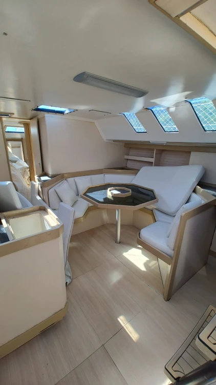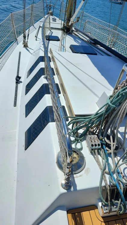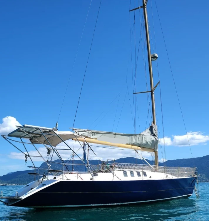 *ESPECIFICAÇÕES TÉCNICAS* Tamanho popa-proa – 44 pés Calado – 2,90 m Capacidade: 1 + 8 passageiros 5 tanques de água – 500 lt Combustível diesel – 100 lt Material construtivo: tipo Swan (sanduiche de fibra e madeira de bálsamo) *MOTORIZAÇÃO* Volvo Penta Ano 2003 – revisado 35 hp Tipo central *VELARIA* 02 Mestras – 1 Elvstron, 1 Northsails 02 Genoa n° 3 - Elvstron, 1 Northsails 01 Genoa n° 1 – tipo self taking-head-Northsails *ELETRÔNICOS* Piloto Automatico Autohelm 7000 Raytheon Depth , Wind e Speed GPS Garmin 740S – sistema interfaciados Radar Garmin 02 Sondas – 1 Autohelm, 1 Garmin Radio VHF Bússola *ELÉTRICA* Placa solar 8 baterias 150w Conversor 12V-110V de 800W Central de comando das baterias Painel elétrico customizado e embutido em cima da mesa de navegação *INTERIOR* 3 qtos – 1 suite 2 banheiros Sala com mesa redonda Cozinha completa com fogão Geladeira, pia elétrica, cooler, dispensa e armários Mesa de navegação *ANCORAGEM / FUNDEIO* 01 Guincho com acionamento elétrico e remoto 02 âncoras Todos cabos Defensas *SALVATAGEM / APOIO* 1 bote 2,60 m – Regatta 1 motor de popa Mercury 3.3hp 3 Extintores 9 Coletes 2 bóias circulares Sinalizadores SpotX *INFORMAÇÕES ADICIONAIS* Targa inox com dois assentos Lona de proteção – capa Bimini Fishfinder Reforma geral e pintura total em 2022