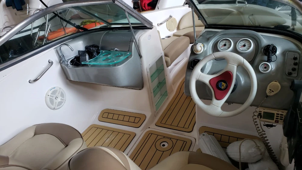 Barco muito bem conservado e completo, com todos os itens de série. Baixo uso. Estofados novos, feitos pelo próprio estaleiro. Som (caixas marítimas e rádio vhf) Bomba de porão, Bomba de água doce, Luzes de navegação, E.V.A., Escada de proa, Toldo, Defensas, Salvatagem completa