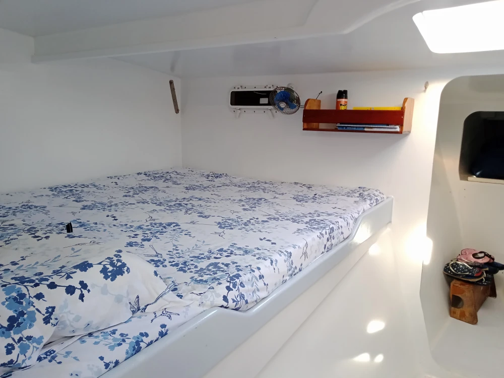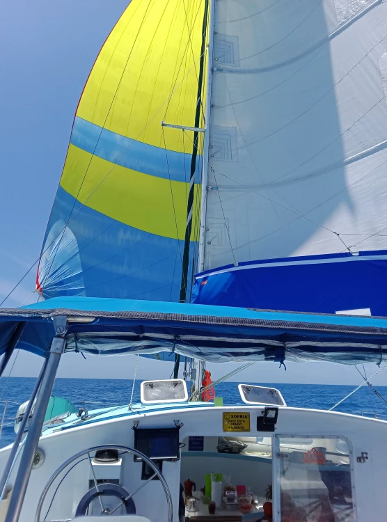 Especificações técnicas: Modelo: CATAMARÃ KELLY 37’ Fabricante: Estrutural Estaleiro Ltda / Cabo Frio, RJ Projeto: Designer Inglês DEREK KELSALL Ano: 1989 – 1ª inscrição 1991 Tamanho: 37 pés – 11,32m Pé direito: 1,80/1,85m Boca: 6,00m Calado: 0,60m Material do casco: Fibra de vidro com poliuretano (Tecnologia Sanduiche inventada por Derek Kelsall) Ano do estaiamento: 2018 Data da última pintura de fundo: Outubro 2023 (Epoxy com cobre) Última pintura decks e costados: Novembro 2023 (PU) Organização global 2 escadas na popa levam ao Cockpit exterior bem fechado, onde podem sentar 10 pessoas. De lá se entra no Salão com mesa de cartas, mesa oval onde podem sentar 6 pessoas, um espaço com pia e gavetas e vista de 360° no Mar. 4 escadas dão acesso a Cozinha, com Pia principal e Fogão a gás com forno e aos Banheiros com duchas de cada lado, além dos motores, escondidos, e a 4 Cabines amplas com camas de casal com altura máxima de cabine de 1,80m Se preferir passar tempo no exterior, além do Cockpit exterior, 8 pessoas podem sentar e/ou deitarem confortavelmente, no amplo deck de Proa e tomar Sol contemplando o Mar e o Horizonte de forma segura. 2 CABINES DE PROA (BORESTE & BOMBORDO) Superfície aproximativa de 8m2 Cama de casal de 1,90 x 1,45 Gavetas para guarda-roupa na lateral Gavetas para coletes salva-vidas na proa Gaiuta PLASTIMAR importada com persiana blackout e mosqueteira Tomada 110 V e USB Tanque de água: 2 x 200L 2 CABINES DE POPA (BORESTE & BOMBORDO) Superfície aproximativa de 6m2 Cama de casal de 1,90 x 1,30 Gavetas para guarda-roupa na lateral Cofres amplos para material e equipamentos diversos Gaiuta de teto e lateral Tomada 110 V e USB Tanque de combustível: 2 x 100L SALÃO CENTRAL Superfície aproximativa de 13m2 Mesa oval para 6 pessoas Geladeira/Freezer ADLER 12V – 120L Mesa de cartas com Painéis elétricos (Motores & Barco) Espaço cozinha com pia, gavetas e armários para comida & talheres diversos Cofres amplos debaixo do banco da mesa oval Tomadas 110V e USB 12 janelas de acrílico facilitam a vista a 360° no Mar 2 BANHEIROS (BORESTE & BOMBORDO) Superfície aproximativa de 2m2 WC elétrico (bombordo) & manual (boreste) Ducha com pressão água doce fria, lavabo e espelho Compartimento fechado para os Motores ESPAÇO COZINHA (BORESTE) Superfície aproximativa de 2,5m2 Pia com água doce e/ou do Mar (opcional) Armários diversos para armazenamento Fogão 3 bocas + forno a gás Tomadas 110V ESPAÇO MANUTENÇÃO (BOMBORDO) Superfície aproximativa de 2,5m2 Mesa de trabalho Armários diversos para armazenamento equipamentos e produtos diversos DECK DE PROA Superfície aproximativa de 18m2 Amplo espaço para tomar banho de Sol com colchonetes 2 trampolins para brincar com segurança Linha de vida do Cockpit exterior de popa até os trampolins de proa. 2 cofres para âncoras, defensas, cabos de amarração... COCKPIT EXTERIOR DE POPA Superfície aproximativa de 8m2 Posto de pilotagem (roda de leme) e comando das escotas de Vela Mestra e Genoa Bancos laterais (costados e popa) seguros Possibilidade de colocar uma pequena mesa no cockpit Luz externa Cofre amplo para armazenamento equipamentos e produtos de limpeza diversos MOTORIZAÇÃO: 2 motores marinizados RETIPAR Marca: Volkswagen Modelo: Kombi diesel 1,6 Potência: 2 x 40 HP Ano: 1990 Horas de uso: não há registro preciso – 300h de 04/2021 até 01/2025 Sistema de transmissão: direita reversor/pé de galinha via eixo homo cinético – Reversores MOLD – Selos mecânicos PSS SEAVIEW Combustível: Diesel (2L/h máximo) Última revisão completa: Dezembro 2024 (Tanques de diesel, Troca de Mangueiras, Filtros, Óleo, Correias dentadas, Correias de alternador, Correias de Bomba de água salgada, Rolamentos e Retentores Reversores, Rotores Bombas de água salgada) VELAS: 01 Mestra ULLMAN SAILINGS dacron (importada) 01 Genoa ULLMAN SAILINGS dacron (importada) 01 SPI assimétrico Adriças de velas de 10mm poliéster pré-esticado Escotas de genoa de 12mm poliéster pré-esticado LAZYBAG VINX Novo p/ vela Mestra (Dezembro 2024) 04 Catracas WIMAQ 01 Enrolador de Genoa NAUTEC Roda de Leme Equipamentos NAUTOS EQUIPAMENTOS ELETRÔNICOS: 01 Piloto automático AUTO HELM 4000 (Roda de Leme) 01 Agulha magnética (bússola) 01 Pack BG TRITON 2 (anemômetro digital – eco sonda bombordo – odômetro digital) 01 Ecosonda digital GARMIN a boreste 01 Transponder AIS – Classe B ICOM MA 510TR 01 Rádio VHF ICOM 02 Repartidores/Isoladores Baterias VICTRON 01 MPPT 100/30 VICTRON EQUIPAMENTOS ELÉTRICOS: 01 Placa Solar NEO SOLAR 400W 04 Baterias MOURA (2 x 100 Ah p/ Motores – 2 x 150 Ah estacionárias p/ Serviços) 01 Inversor 12V x 110V – 1000W POWER XANTREX 01 Bomba de Água doce SHURFLO 11,3 LPM 01 Geladeira/Freezer ADLER 12V – 120L 01 WC elétrico bombordo OCEAN 01 Guincho elétrico vertical PRO SC 1000 01 Motor elétrico 3 HP p/Bote PHANTOM 54 – MARINE Múltiplas tomadas elétricas 110V e USB em todos os espaços Todas as fiações elétricas (Motores e Barco) trocadas com painéis e instrumentos novos importados (Novembro 2024) ACESSÓRIOS: Bote CARIBE (Importado) 2,80m fundo rígido 01 ducha de popa 01 Bimini cobrindo cockpit exterior com proteção acrílica contra a chuva 01 escada de banho retrátil na popa 02 trampolins VINX na proa 45m corrente galvanizada 08mm 04 defensas 03 âncoras 02 linhas de vida de popa para proa boreste e bombordo Amplos cofres interior e exterior para guardar volumes. 05 gaiutas novas PLASTIMAR (Importadas) Novos Pisos e Bancos antiderrapantes Cockpit exterior e Sala principal (novembro 2023) Colchonetes para tomar banho de Sol 02 boias salva-vidas confirme regulamentação Coletes salva-vidas Todos os dispositivos pirotécnicos de salvatagem e extintores de incêndio obrigatórios. DOCUMENTAÇÃO: Área de navegação: Mar Aberto Capacidade máxima de passageiros: 1 Tripulante + 15 passageiros para passeios diurnos 8 passageiros para passeios mais longos (4 c