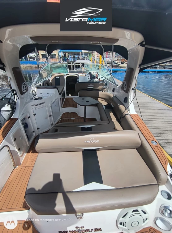 VISTAMAR NÁUTICA - Marina Aratu LANCHAS NOVAS E SEMI-NOVAS A ligação entre você e seu sonho. CASCO/PÉS: Triton 29.5 ANO INSCRIÇÃO: 2014 PROA: Fechada CAPACIDADE: 01 + 09 MARCA DO MOTOR: Mercury 6.2 V8 POTÊNCIA: 300hp PROPULSÃO: Centro COMBUSTÍVEL: Gasolina HORAS: Apenas 50h ACESSÓRIOS: Salvatagem completa, guincho elétrico com âncora 10 kg com 50m de corrente, vaso sanitário elétrico, sistema de som novo com cornetas twitter + 2 subwoofer, microondas, tv led, inversor 3000w novo, frigobar novo, 3 baterias 150 moura novas, estofados novos, piso em eva novo, capota nova vinix, gps com sonda, rádio vhf, 4 defensas polyform, 6 luzes subaquáticas novas, flaps hidráulicos com central automática novos, churrasqueira inox nova, tomada usb e usb c, farol de busca com controle, toldo, carreta encalhe e buzina. VALOR: DE: R$440.000,00 POR: R$395.000,00 VENHA NOS VISITAR E CONHECER ESTA E OUTRAS EMBARCAÇÕES NOVAS E SEMI-NOVAS. Agende seu test-drive. VISTAMAR NÁUTICA ABERTO DE SEGUNDA A SÁBADO DAS 09H ÀS 17H E AOS DOMINGOS E FERIADOS DAS 08H ÀS 13H. CONTATOS E REDES SOCIAS: 071-99954-4411 (OI) (WHATSAPP) 071-98888-4411 (VIVO) (WHATSAPP) E-MAIL: vistamarnautica@hotmail.com INSTAGRAM: @vistamarnauticaoficial FACEBOOK: Vistamar Náutica SITE: www.vistamarnautica.com.br