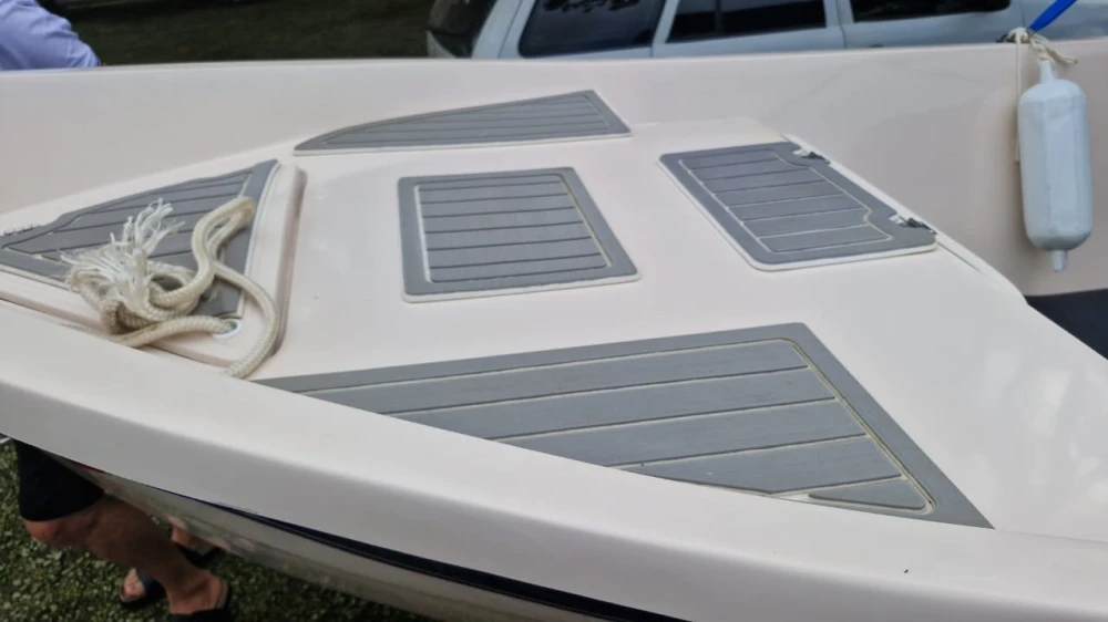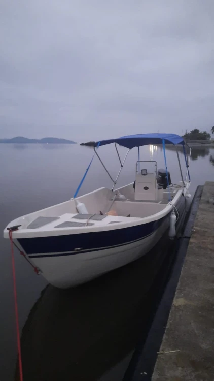 Lancha de fibra , marca Zagaia, casco Duplo 6,5m Borda Alta Aano 2024 Novo Capacidade 6 pessoas. 02 Baterias com chave seletora, todo equipado, toldo, carreta e enchalhe com eixoo de automóvel, escada inoxo, Emborrachado, dois tanques de gasolina, 4 espias e remo, 6 coletes e boia, bomba de porão, toda documentação em dia valor R$ 54.000,00 com carreta