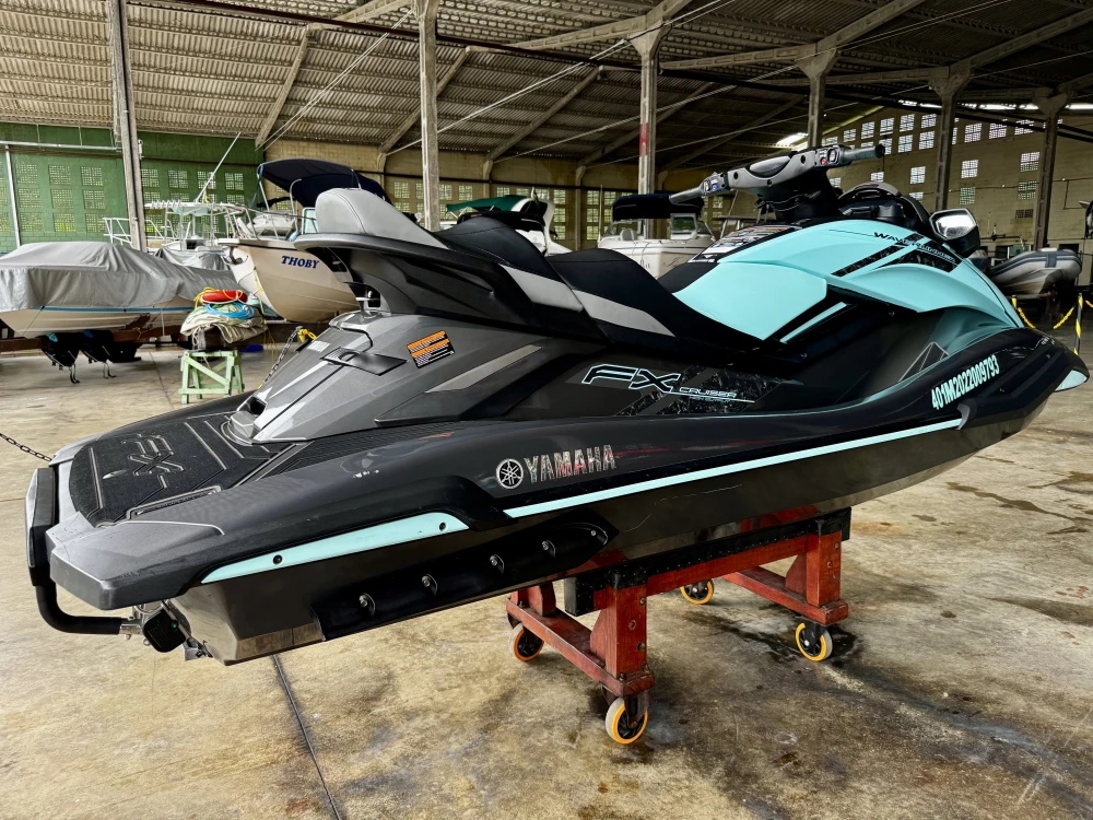 Marca Yamaha Modelo YAMAHA FX HO Ano 2022 Um verdadeiro show de equipamento para quem procura: Estilo, Conforto e Performance. INFORMAÇÕES Tempo de uso: 130 horas Cor: Cinza e verde (uma das cores mais lindas já produzidas pela Yamaha) Capacidade: Até 3 pessoas Motorização 1.800 CC (o melhor motor já produzido pela Yamaha), 4 cilindros Capacidade de tanque de combustível: 70 Litros Comprimento: 3,58 m Largura: 1,27 m Altura: 1,23 m Peso: 383kg TECNOLOGIAS Tela Connext® 5” touchscreen; Mapa GPS instalado; Conexão bluetooth para notificações de chamadas e mensagens; Sistema de bloqueio por senha (super prático); PILOTAGEM RiDE® (sistema de desaceleração intuitiva com ré); Controle de pilotagem; Piloto Automático; Wake mode; T.D.E (auxilio de manobras em baixa velocidade); TRIM automático e elétrico. MANUTENÇÃO - 100% revisado com especialista Yamaha. - Manual do proprietário com selos de manutenção; - Bico de adoçamento Flush); - Chave ignição - cordão; - Capa de proteção para utilizar em garagem (capa não rodoviária). A embarcação fica em Marina especialista em jetski no Guarujá, SP. Não aceito trocas. Apenas venda. Caso queira, tenho carreta (ano 2021) pouco rodada. Valor a parte R$ 2.900,00.