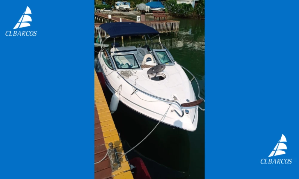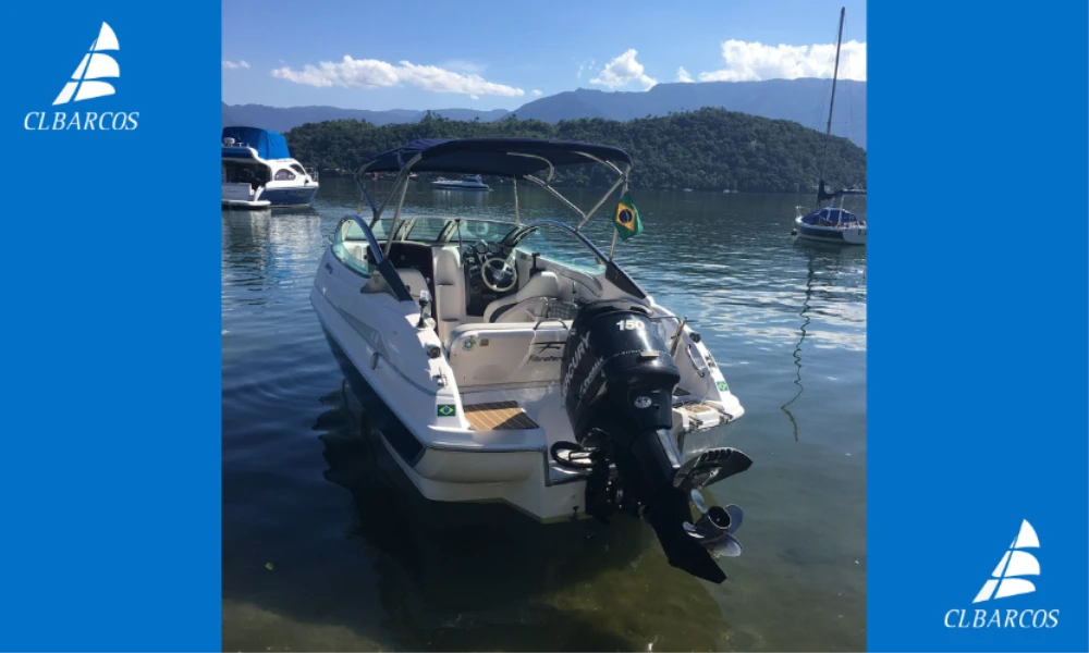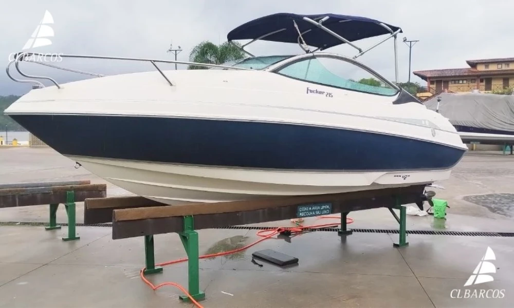 Focker 215 cabinada, ano 2010; ; Mercury Optimax 150HP com power-trim no comando e no motor; ;. Caixa de direção Safe-T.;; ;; Hélice aço inox 4 pás para torque e desempenho;; ;; Hidrofólio StingRay original na rabeta;; ;; 450h aproximadamente. Revisões e manutenção com troca de peças originais;; ;; Instrumentos Mercury originais. Sonar e GPS Map Garmin. Bússola Ritchie horizontal com iluminação noturna.;; ;; Lancha de 21 pés com cabine de proa fechada, ótima para guardar as bolsas e materiais em local seco;;;;;; Deck revestido com piso emborrachado da Kapazi.;;;;; Cama de casal para descansar com banheiro interno, mini-prateleira bar e gaiuta de ventilação no teto. Luzes de led interna. ;;;;;;;Acomoda 7 pessoas/dia. Espaço confortável no cockpit com 2 bancos giratórios, sofá lateral e sofá em L. Estofado novo. Porta trecos laterais e abaixo da pia. Paiol central com acesso ao tanque de gasolina, acomoda defensas e outros utensílios. Paiol traseiro com acesso a bateria, tq de óleo optimax, filtro de gasolina, bomba de porão e local de guarda de outros utensílios. Paióis laterais embaixo dos sofás, para guarda de cabos, baldes, âncoras, material de pesca etc.;;;;;;;;;;; Capacidade registrada de 1 tripulante e 7 passageiros. ;;;;;;;Tem solarium na proa e na popa com banco escamoteável. ;;;;;;Duchinha traseira de água doce com tq de 25L e bomba de pressurização automática. Pia de água doce no cockpit. ;;;;;;;;Toldo grande para a proteção do sol. Bimini rebatível e removível caso seja necessário. Som com conexão cabo p2 e bluetooth para celulares. ;;;;;;Tanque de combustível de 140L que garante ótima autonomia para passeios mais longos. Filtro de gasolina com decantador de água. Tanque de óleo optimax externo com capacidade para 6 litros. ;;;;;;;;;; Consumo do motor Optimax 150HP fica em torno de 25L/h (lotação máxima) e 17,5L/h (leve). Melhor alcance em 3200rpm. Bateria 12V com chave Perko. Bomba de porão Rule com automático e acionamento manual no painel. Material de salvatagem, coletes salva-vidas, extintor, luzes de navegação em led, 2 âncoras (proa/popa), corrente, cabos e 2 defensas. Escada de acesso ao mar, em aço inoxidável e dobrável. Registros do vaso sanitário em latão. ;;;;;;;Barco fica em seco e aos cuidados semanais de marinheiro.;;;;;;;;;;;;