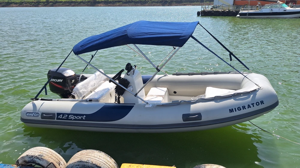 Totalmente reformado na fábrica da Zefir em janeiro de 2024, revisão mecânica completa setembro de 2024. Motor Mercury 50hp, sonda, escada e âncora de inox, 4 coletes salva vidas. Capa nova e capota. Carreta Rodoviaria. Excelente estado de conservação.