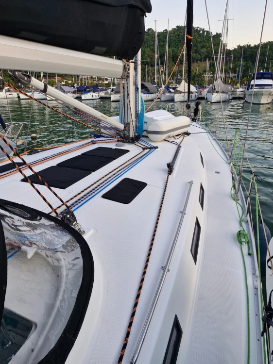 Cota 25% Bavária 45 ano 2013 em ótimas condições, mastreação Selden, velas em bom estado, convés em perfeitas condições, plataforma elétrica, GPS, VHF, piloto automático, tridata, AIS, radar, Epirb, balsa salva vidas revisada, motor Volvo D2-50F novo com 800 horas de uso, dessalinizador, gerador Mini Panda 7 novo, 6 baterias de 105Ah para serviço e 1 105Ah motor, guincho életrico com 100 metros de corrente, água quente em todas as torneiras, 3 suites com ar condicionado, ventiladores, tomadas USB, salão amplo com 2 geladeiras, fogão de 2 bocas com forno, microondas, mesa para 8 pessoas, 02 tanques de água 250 e 150 litros, tanque diesel 250lts, 2 placas solares, controlador MPPT, bimini e doghouse em bom estado com fechamento total do cockpit, teka no cockpit e plataforma, churrasqueira, stand up com suporte, bote de apoio 2,2 m e motor de popa 5HP novo. Valor referente a 1/4 do barco. R$540.000,00