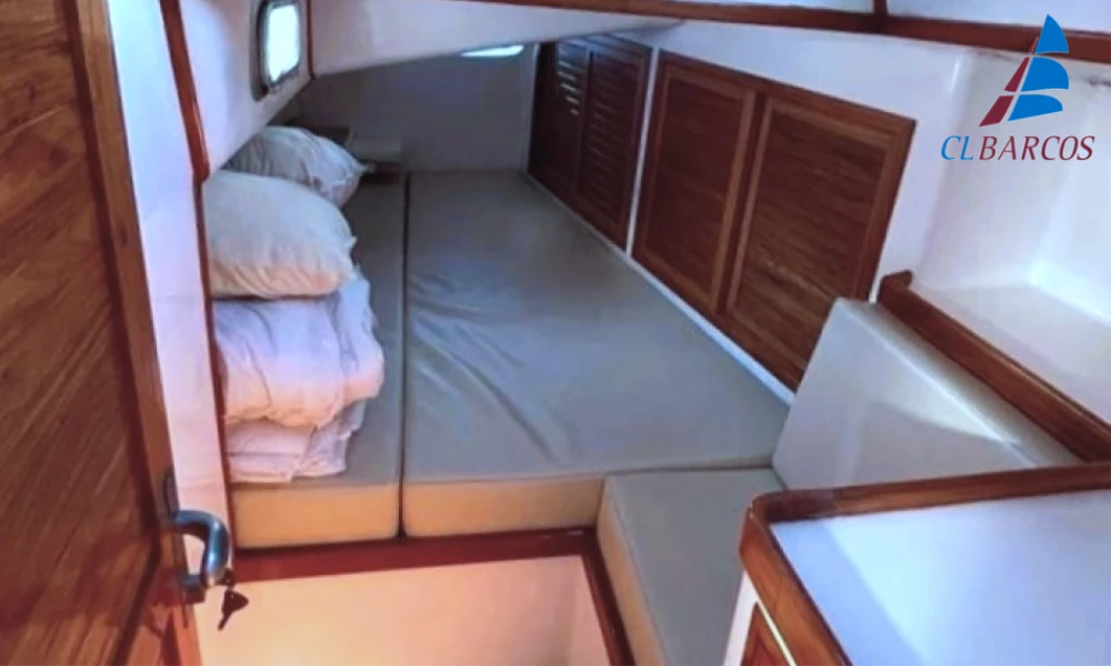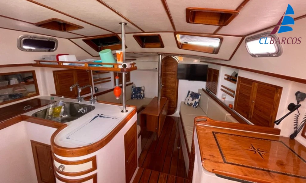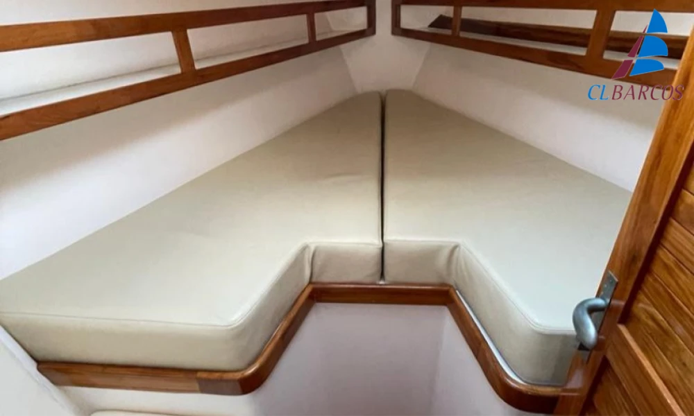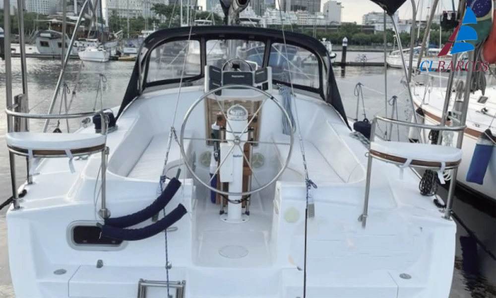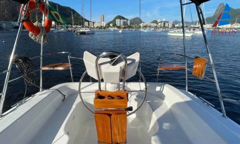 Velas, motor e segurança 01 Mestra North Sails 01 Genoa I North Sails 01 Genoa II Quantum Gennaker North Sails Motor: Yanmar Modelo: 3YM30 Potência: 29hp Horas de uso: 862 Transmissão: Pé de galinha Tipo do hélice: Gory folding 2 pás / reserva fixa de duas pás Tanque de combustível: 300L Guincho elétrico Âncora Bruce inox 15kg 30m correntes e 30m cabo Defensas Eletrônicos e elétrica Tridata Raymarine Piloto automático Raymarine ChartPlotter novo Raymarine 03 Baterias de serviço 150amp (2023) 01 Bateria de partida 150amp (2023) 04 Painéis solares de 150W (cada) Controlador de carga MPPT Geladeira 12V Bomba de porão com automático Água pressurizada WC elétrico Estrutura e acessórios Estaiamento 2014 revisado 2024 Pintura de fundo 2023 Tanque de água doce 600L Bimini, dog house e lazy jack Targa em inox com assento no púlpito de popa Fogão 3 bocas com forno Mesa no cockpit Bote de apoio 2,8m Motor de popa 3,3hp 11 Coletes adultos 03 Coletes infantis Pirotécnico na validade