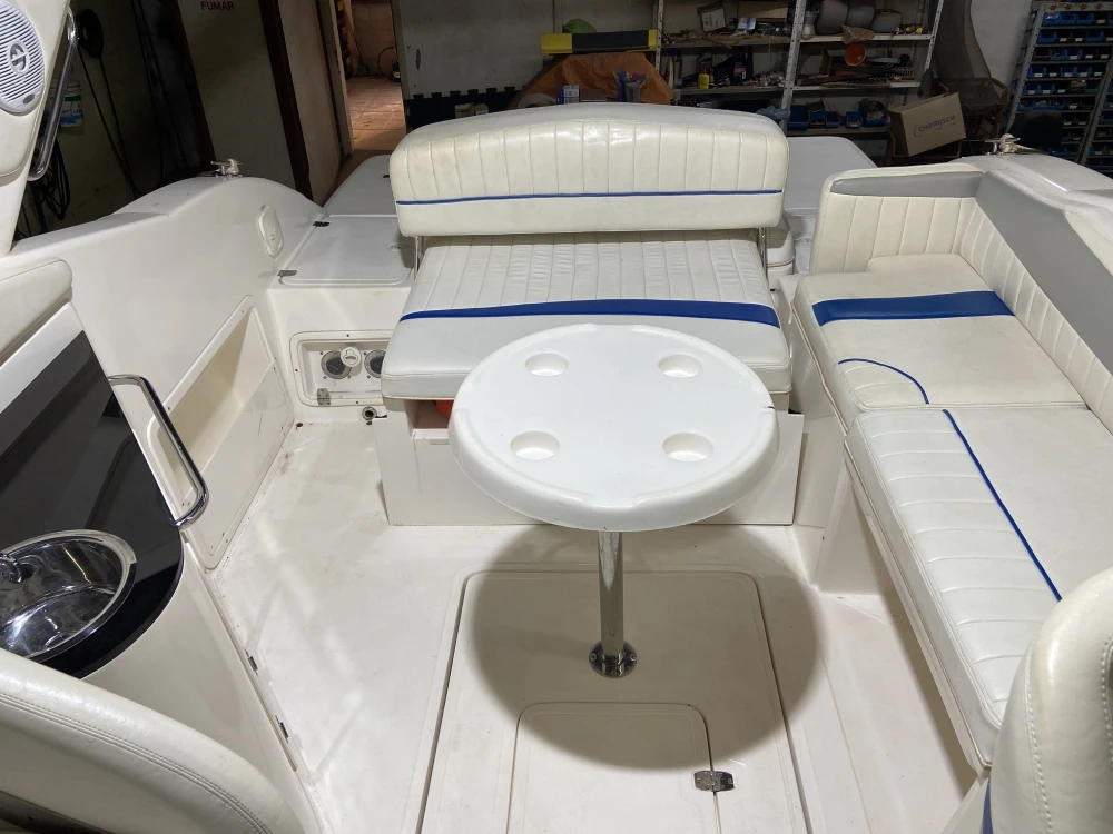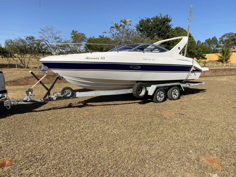 Lancha Phantom 260 cabinada ,ano 2009 com 223 horas, rabeta Alpha One zero na garantia, guincho de ancora, 40 mts de corrente calibrada, ancora de 12 kg, motor Mercruiser 5.0 260 HP, vaso sanitário elétrico, GPS/Sonar Garmin 421S, inversor de 1500 Watts, radio VHF, som bluetooth, flap elétrico/hidráulico, fechamento total, direção hidráulica, boiler de 20 litros para água quente na ducha do deck de popa, 60 litros de água, 200 litros de gasolina, carreta rodoviária galvanizada com freio inercial a disco, consome 30 litros por hora em velocidade de cruzeiro, (40 km/hora), documentação em dia.