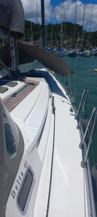 R$ 1.400.000,00 ESPECIFICAÇÕES TÉCNICAS: Modelo: Delta 41 Projeto: Nestor Volker Ano: 2020 Tamanho: 41 pés Versão 2 cabines e 2 banheiros Boca: 3,95m Calado: 2 m Pintura de fundo: fevereiro 2024 Capacidade água: 430 litros Capacidade diesel: 200 litros MOTORIZAÇÃO Motor: Yanmar Modelo: 3JH40 Potência: 40 hp Horas de uso: 865h Transmissão: Rabeta Modelo do hélice: fixa de 3 pás VELAS 01 mestra em dracon semi fullbattem Quantum 01 genoa em dracon Quantum ELETRÔNICOS ChartPlotter Raimarine no cockpit com carta Navionics Wind Raimarine I 60 Piloto automático Raimariner EV 200 Rádio VHF Lawrance com AIS ELÉTRICA 4 Baterias Freedom DF-2000 105Ah para banco de serviços 2 baterias 70AH para motor e catráca elétrica Placa solar 100w com Ar-condicionado 12.000 BTUs (não tem gerador) ACESSÓRIOS Bimini, dog house e lazy bag Enrolador de genoa Targa em inox com turco e bancos no púlpito Plataforma de popa 02 catracas Nautos 48” para escotas da genoa 02 catraca Nautos 44” para adriça e rizos, sendo uma elétrica Trilho para buja autocambente (sistema selftech com carrinho) ATRACAÇÃO/FUNDEIO Guincho elétrico Quick de 1000w com controle remoto com fio Quick Ancora Roka de 20kg 60m de corrente de 8mm 40m de cabo DOCUMENTAÇÃO Em dia