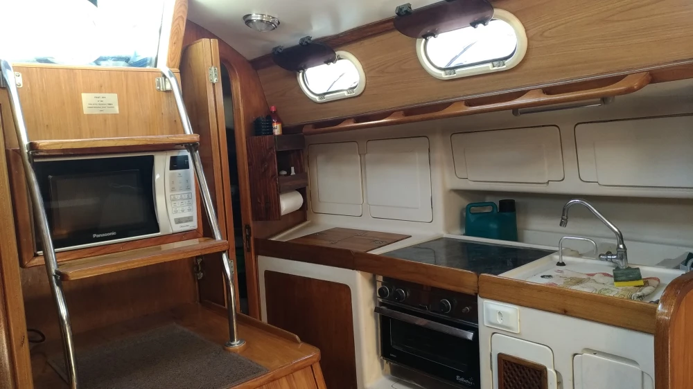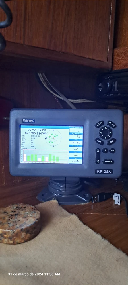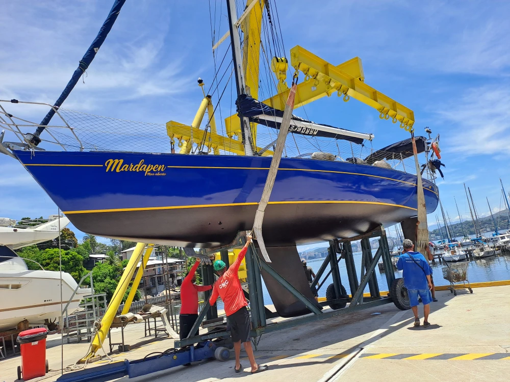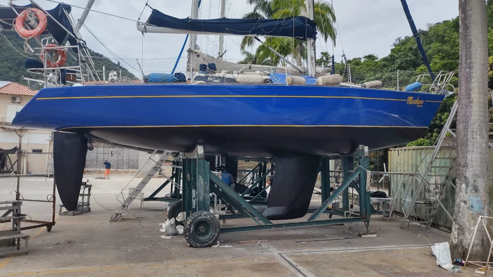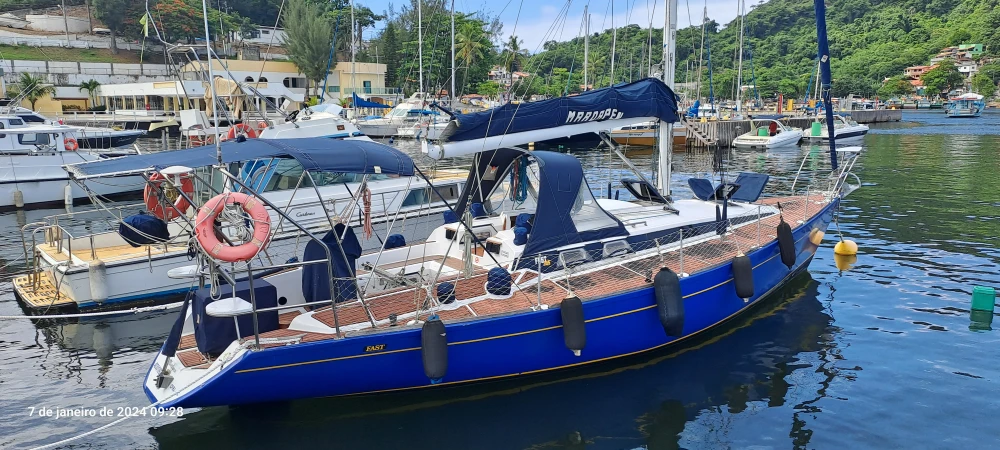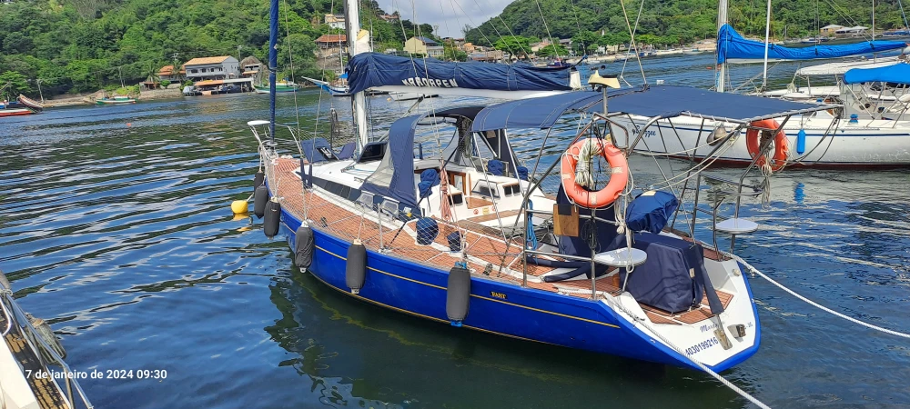 Nome: Mardapen Marca: Fast Tipo: Veleiro Transoceânico Modelo: 395 Popa Aberta Ano: 1991 Estaleiro: Fast Yachts Projetista: German Frers Cor: Azul Oceano Comprimento: 40 Pés - 12,24m Pé Direito: 1,90 m Boca: 3,87m Mastro: 16,28 m - 03 Cruzetas Retranca: 4,34 m Calado: 1,80m Peso: 7,2 Ton Material casco: Fibra de vidro Motor: Centro rabeta Volvo MD2-40HP 2013 com partida digital Combustível: Diesel Tanque combustível: 180 l Tanque água: 350 l Tripulantes: 01 Passageiros: 09 Classificação: Mar Aberto /CPRJ Manual do Proprietário INTERIOR 02 Suítes de casal, com vários armários 04 Beliches Salão Central 02 Banheiros com sanitários Jabsco elétricos, ducha, pia e armários 01 Boiler água quente elétrico/mecânico 20l Quick com termostato 01 Cozinha com pia e armários 01 Geladeira 12V 390 litros 01 Geladeira/Freezer Elber Black 75L Quadrivolt 01 Fogão inox com forno 01 Microondas 20l Panasonic 01 Máquina de lavar roupas 01 Inversor Abso Sinewave 2000W com saídas 110V/220V e carregador de bateria 70AH 01 Amplo Salão com mesa de centro, armários e Iluminação em led 01 Escrivaninha de capitão 01 AIS e GPS ONWA PK-38A 01 Rádio VHF ICOM 504 com repetidor no cockpit 01 Estação meteriológica La Crosse V40-Pro 01 TV Led 20" 01 Rádio MP3 com USB e autofalantes internos e externos 04 Baterias MouraBoat deep-cycles de 105Ah para serviço 01 bateria 60Ah para o motor 01 Bomba de porão Seaflo 750 GPH 01 Bomba água doce Italiana 01 Painel de controle elétrico 03 Tomadas de 110/220V 05 Ventiladores 12V EXTERIOR Roda de leme inox, com bússola de 8" em Base Tomada de Cais 110/220V Bímini em inox Dog House Toldo na retranca Targa em inox 316, com 02 assentos na cor branca Teka EVA em todo barco 04 Gaiutas Lewmar em alumínio e visores externos em acrílico, com capa em lona acrílica 08 Vigias Lewmar 06 Cunhos 04 Catracas Harken 02 Catracas Harken 02 Catracas Wimaq 40 01 Enrolador de genoa Harken Guardas mancebos com rede de proteção 11 Defensas G5 com capa 01 Âncora Rocca galvanizada 20Kg + 50m de Corrente Inox 8mm 01 Âncora Bruce inox 15kg + 50m de cabo de cabo 14mm (reserva) 01 Guincho Lewmar 1.000W com controles remotos Mastro com 03 cruzetas, não fraccionado Luz de top inox com super-led 01 Genoa com capa 01 Vela mestra com capa de retranca e lasy Jack 01 Vela mestra tempestade 01 Vela Balão Assimétrico 08 Stoppers Spinlok 01 Chuveiro de popa 01 Churrasqueira Inox 01 Piloto Automático CourseMaster CM950 Australiano 01 ST60 Wind Raymarine 01 ST60 Deep Raymarine 01 GPS Raymarine Axiom 7 DV com sonda e Radar 01 Antena TV externa Banten 01 Antena AIS externa 01 Cooler Coleman 66 L Xtreme SALVATAGEM & APOIO 02 Boias classe 3 10 coletes 06 Pirotécnicos