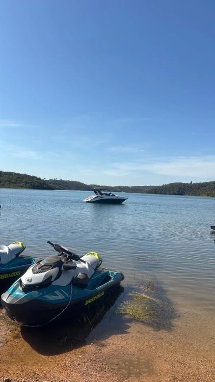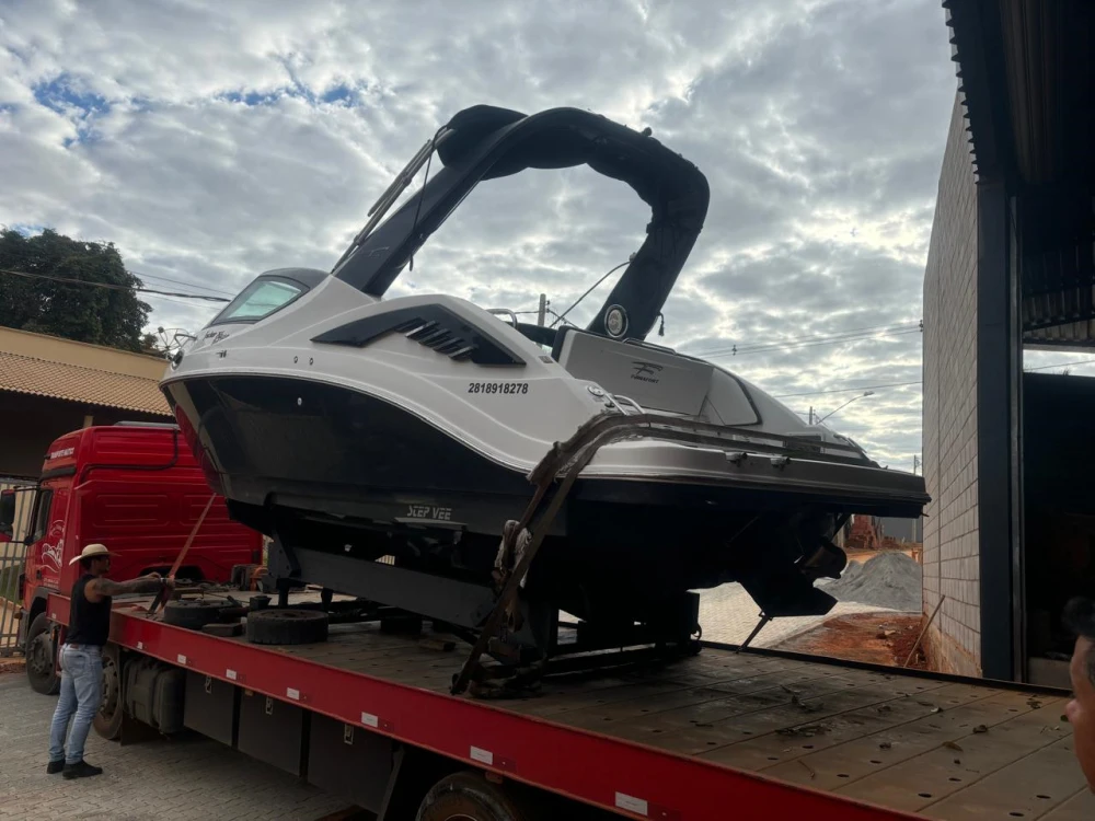 Focker 265 GTC Black Edition Ano: 2017 Motor: Mercruiser 300 HP Carreta encalhe 2 eixo 150 horas Solarium de Proa Falante Som Sonar Farol Ancora Inox Banheiro Guincho elétrico Capota Targa Chuveiro de popa Mesa removível de cockpit Piso Eva Ocre Tomada 12V Bussola