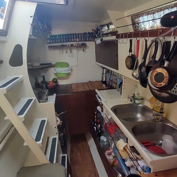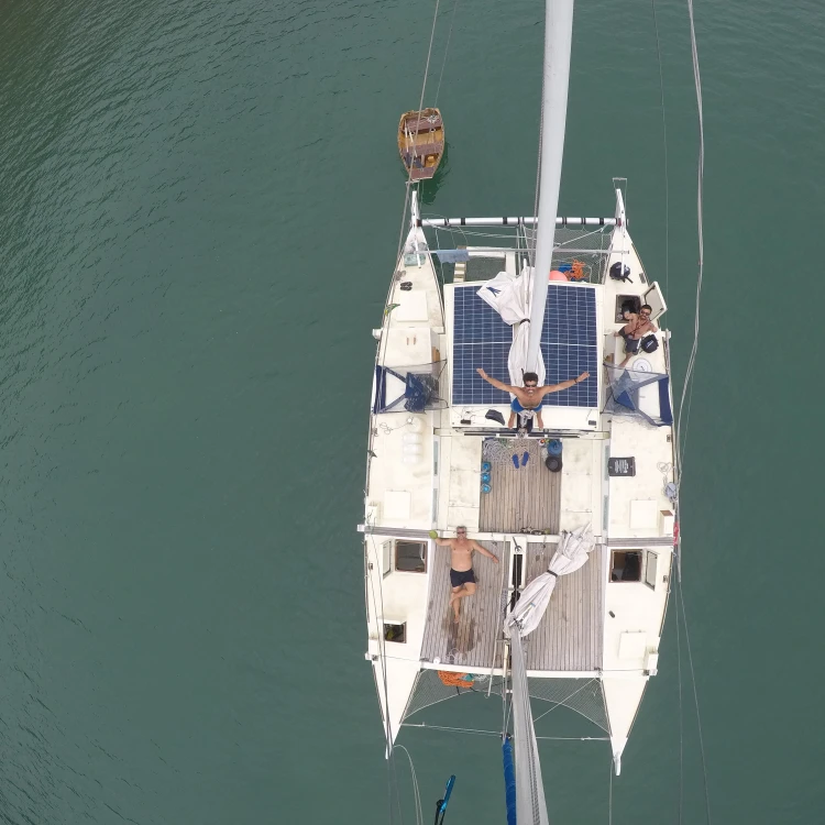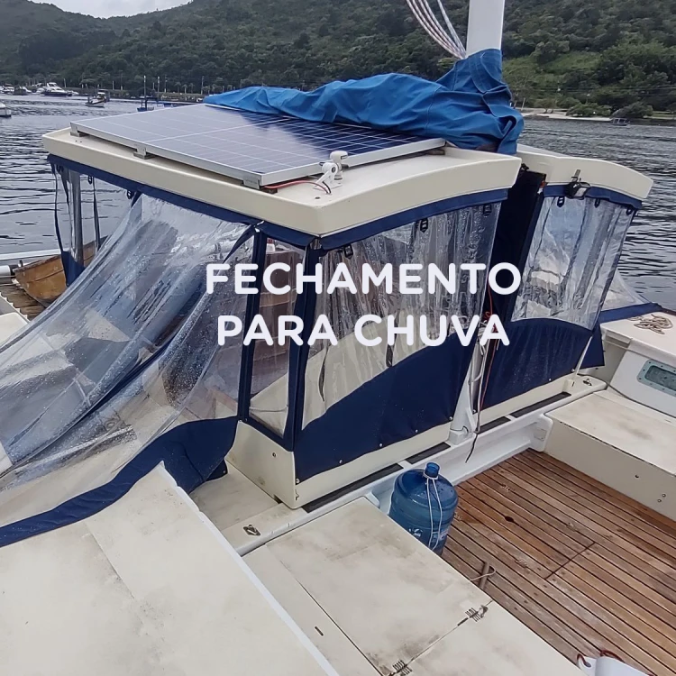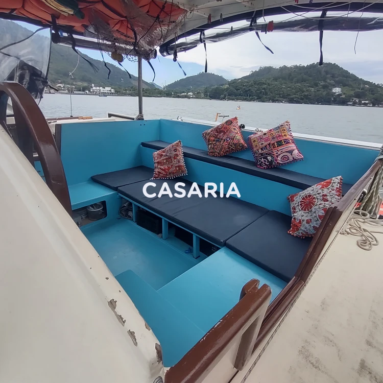 Veleiro Catamarã Tiki 38 James Wharram, em Paraty- RJ Internacionalmente reconhecido como marinheiro e guerreiro em qualquer tipo de mar. 11,6 m de comprimento e 6,2m de boca Construído em compensado naval e resina epóxi de alta qualidade, para uso particular. Muito conforto e segurança. Novembro de 2025 estou fazendo uma reforma no barco, pintura da casaria e decks, logo posto fotos atualizadas. Lotação no documento da Marinha 17 passageiros + 1 Navegação em águas abrigadas 13 passageiros + 1 Navegação Costeira 7 passageiros + 1 Navegação Oceânica Pé direito (medidas): Cozinha Bombordo 1,95m Sala Bombordo 1,85m Cabine de Casal de Proa Bombordo 1,50m (esta cabine tem o piso elevado pois o piso está preparado para receber um tanque de Aquaponia, que não foi instalado, o piso pode ser rebaixado facilmente e o pé direito ficar 1,79m ou 1,84m, depende onde posicionar o piso) Lavatório Cabine de Solteiro de popa Boreste 1,90m Cabine de Casal Boreste 1,90m WC Cabine de Proa Boreste 1,79 (possibilidade de abaixar o piso, pé direito vai para 1,84m) Casaria 1,95m PERNOITE para até 9 pessoas: Cabine de Casal Master casco boreste Cabine de Solteiro boreste Cabine de Casal na proa bombordo Cabine de casal na sala (a sala se transforma numa cabine de casal do mesmo tamanho que a cabine master) Na Casaria dormem 2 pessoas. Cascos e decks Compensado naval de pinho canadense prensado com resina fenólica, alta qualidade. Utilização de madeiras nobres: cedro rosa, timburi, sucupira, massaranduba, ipê. Laminação com tecido de fibra de vidro e resina epóxi. Tinta PU WEG Anti-encrustante Coppercoat original. Mastreação Vela principal carangueja, vela do mastro de vante carangueja e Genoa com enrolador Alado. Velas com sacos de proteção contra sol. Catraca Lewmar 30 Moitões Nautos e Harken (R$ 60.000,00 só de moitões) Tanques de água Cada casco possui um tanque abaixo dos pisos com 155l cada. 3 Tanques de água laminados acima das pias da cozinha (60l), WC principal (20l) e pia da suíte (40l), pintados com tinta especial para tanque de água potável. Água cai por gravidade não necessitando de bombas elétricas, economizando água e energia. Bomba elétrica para levar a água do tanque principal abaixo dos pisos para esses tanques de água acima das pias. WC Vaso manual instalado. Vaso Jabsco elétrico de reserva. Bomba de porão Piso do WC laminado para maior durabilidade Tanque de dejetos de 80l com filtro de carvão, preparado para marinas no exterior. Motor 2 Motores de Popa 2T 15hp Idea 2021 Comandos a distância. Eletrônicos/ Navegação 1 Antena VHF 9db AIS Owna KP 708 (tela de 7”) 2 Placas Solares de 395W 2 Controladores de Carga de 40A 2 Baterias Freedom 240ah. Fios estaiados em todas as instalações. Biruta no mastro. Âncora e Cabos Rocna 25kg com 30m de corrente 8mm 50m de cabo torcido 3 pernas 18mm poliamida Âncora reserva Bruce 10kg com 5m de corrente de 10mm 50m de Cabo torcido 3 pernas poliéster 50m Cabo Torcido 3 pernas 25mm para Reboque 6X 12m Cabo Poliester 10mm para atracação Guincho manual Equipamentos de Segurança 12 Coletes Salva Vidas Classe II G + 55kg 2x Coletes Inflável Automático 2 coletes infantis 4X Cinto peitoral de Segurança com mosquetão de engate rápido Cozinha Bomba elétrica para levar água do tanque abaixo do piso para tanque acima da pia Geladeira 120l construída com isolamento de PU e laminação interna, Kit de geladeira com compressor a distância da Elber. Bote de apoio Modelo Candy 8, construído em compensado naval de Copaíba e Resina Epóxi de alta qualidade, capacidade para até 4 pessoas. Bote rígido muito melhor que inflável sem dúvida. Defensas 2X Defensas redondas grandes vermelhas tamanho A4 Casaria (cabine central entre os cascos) A Casaria tem fechamento completo com lona e acrílico para melhor proteção e conforto. Muita proteção em dias de chuva. Teto da casaria enorme para proteção do sol.
