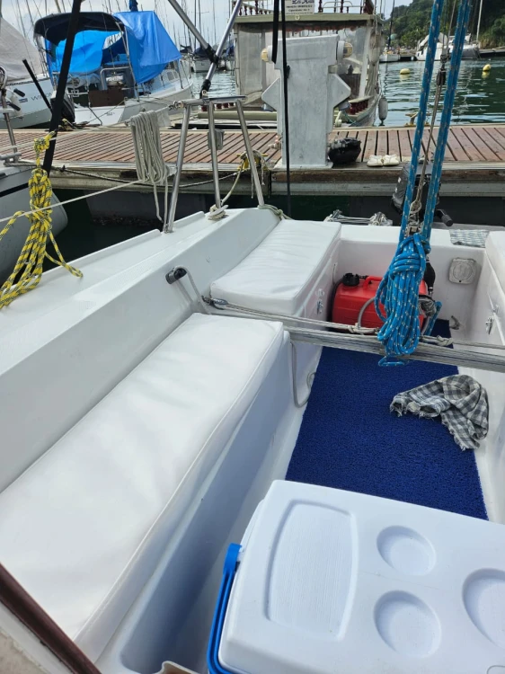 Excelente oportunidade! Raridade, nada pra fazer! Veleiro muito bem cuidado, completo! Fast 230 Boca 2,5m Calado 1.40 Altura cabine 1,40 Tanque de água 35 litros Material casco: fibra de vidro Pintura de fundo: maio/2024 Motorizacao: Mercury 5hp Tanque gasolina 12 litros Velas 02 Genoa 02 Mestrado 01 balão Eletronicos: Rádio VHF Uniden 01 Placa solar 150w nova 01 placa solar 60w 02 Baterias 105am novas Inversor 110 novo 02 controladores de carga 20 amperes Acessórios Vaso sanitário elétrico Agua pressurizada na pia e chuveirinho de popa 02 catracas Enrolador de genoa Alado novo Tapetes interno e externo Almofadas externas novas Toldo externo preso no laser bag Bimini novo Cabos trocados em Fev/2025 Estaiamento em perfeito estado Atracação Ancora Bruce 7,5 kg Ancora dunfoth 3kg 5m de corrente de inox 30m de cabo com distorcedor Documentação: Mar aberto / Navegação costeira Capacidade passageiros: 5 + 1 Boia Circular Coletes salva vidas Documentação: ok Registrado no Rio de Janeiro