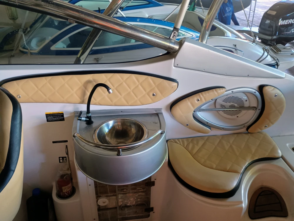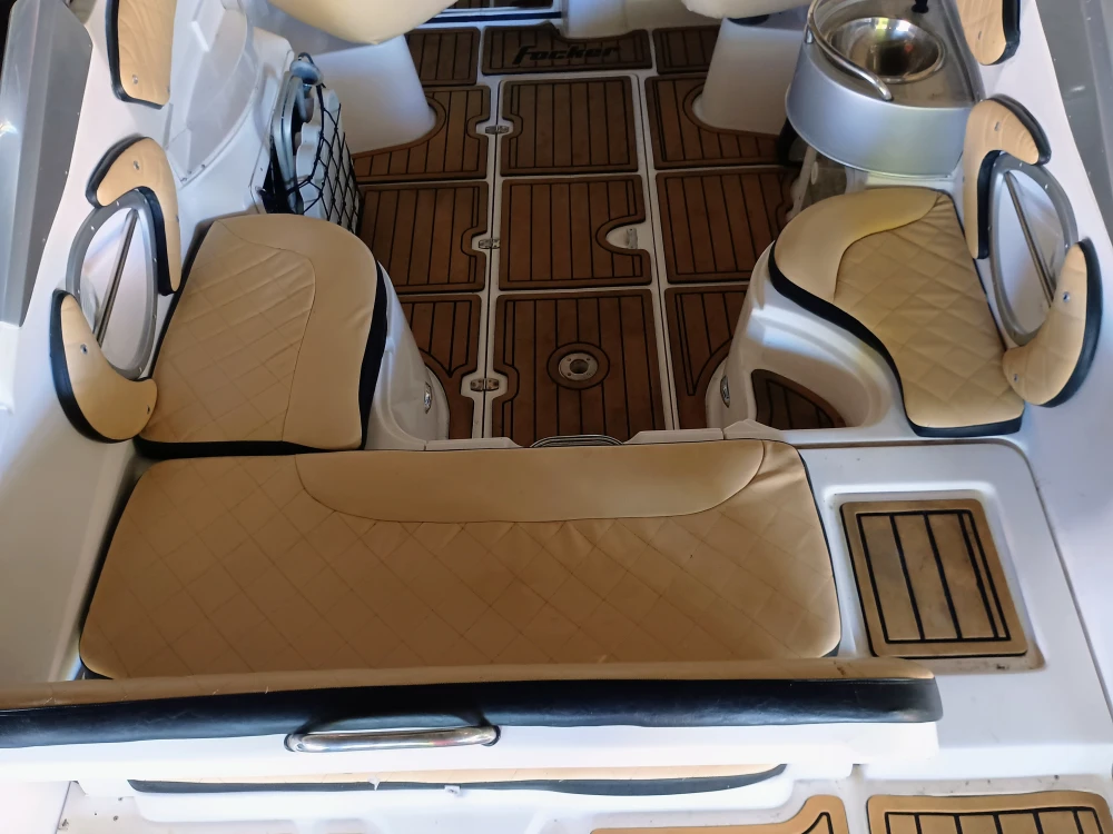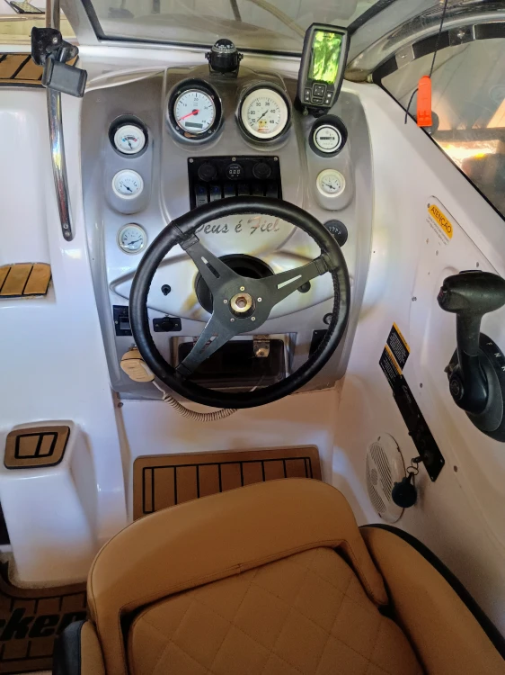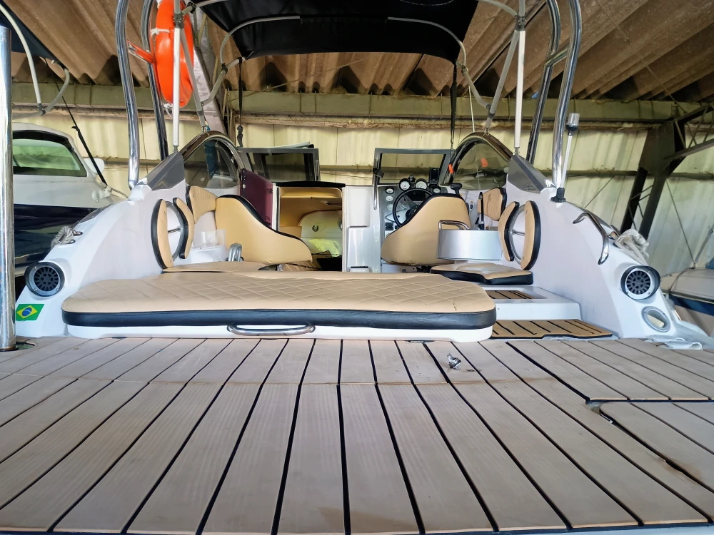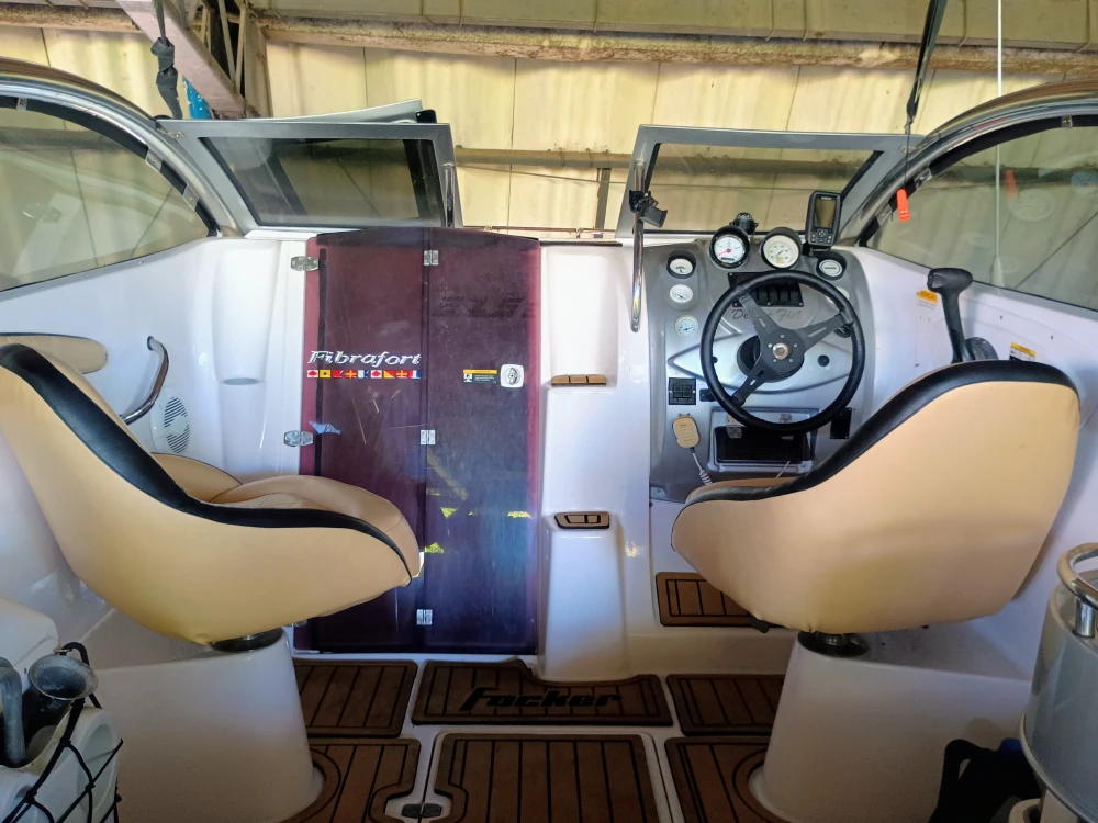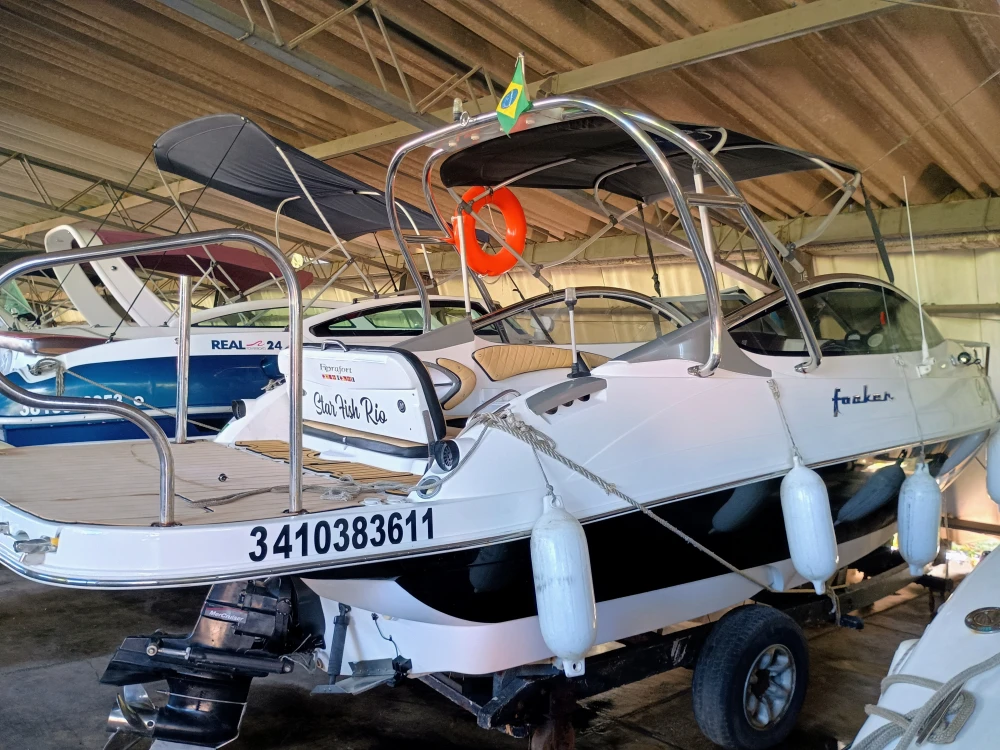 Lancha Focker 215I (Estendida para 25 Pés). Amplo deck de popa, pintura e estafamentos novos, cabine com vaso sanitário, direção hidráulica, guincho elétrico, flape hidráulico, targa de inox, som, motor a Diesel Mercruiser em excelente estado com 400 horas (consome 10 lts de diesel em cruzeiro por hora), revisão total em dezembro 2024, com trocas dos óleos, filtros e correia dentada.