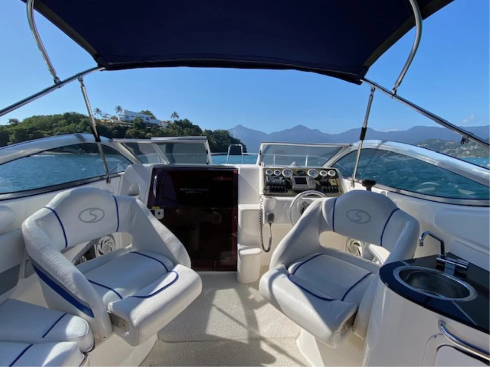 Phantom 260 em ótimo estado. Motor Mercury 5.0 260 hp revisado na autorizada, Rabeta Bravo Three com helices Inox. Toilet elétrico, ancora em aço inox e guincho elétrico, bússola, sonda, VHS, salvatagem, 2 baterias novas na garantia, toldo, estofados e tapetes remodelados. Carreta semi-rodoviaria nova (2023). Pronta para navegar!