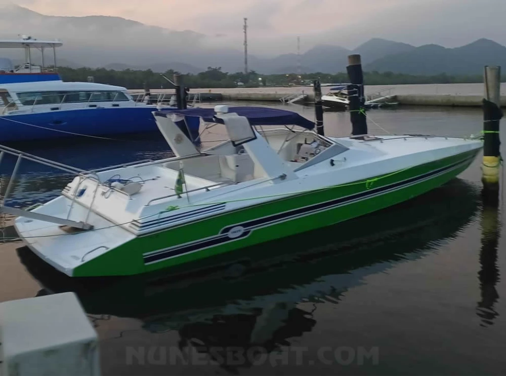 CÓD 6708 MAGNUM 39: 1994, 2x vp kad42 225hp, diesel, 350hs de uso, 39 top e 27 cruzeiro, rabetas vp 295 dp, âncora, baterias, bomba de água doce, bombas de porão, bússola, capota, carregador de bateria, carreta de encalhe, churrasqueira, chuveiro de popa, (12) coletes, defensas, direção hidráulica, extintores, farol, foguetes, geladeira, gps c/plotter, guincho elétrico, inversor, microondas, rádio vhf, sanitário comum, som, tomada de cais, (3) ventiladores... ... F/c. Nunes (13)99706-0395