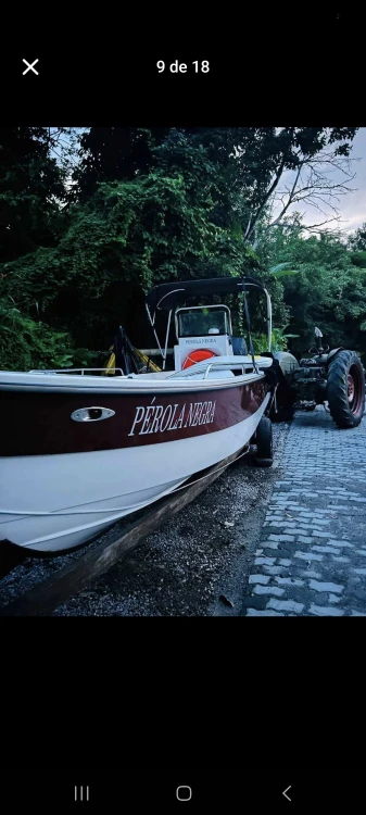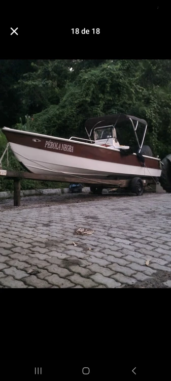 Barco cf 7 metros comando central...única no litoral, mercury 60hp 4 tempo 2018 com 210 horas revisado... Completo: Sonar garmim 5 vivid 2 âncoras e cabos Capota Estofados Está como esporte recreio 5+1 porém da para por transporte.... 10+1 Luzes submersas 2 baterias de 60amperes Chave geral nova Tanque 50litros Revisão a 1 semana feita Barco novo a toda Prova!