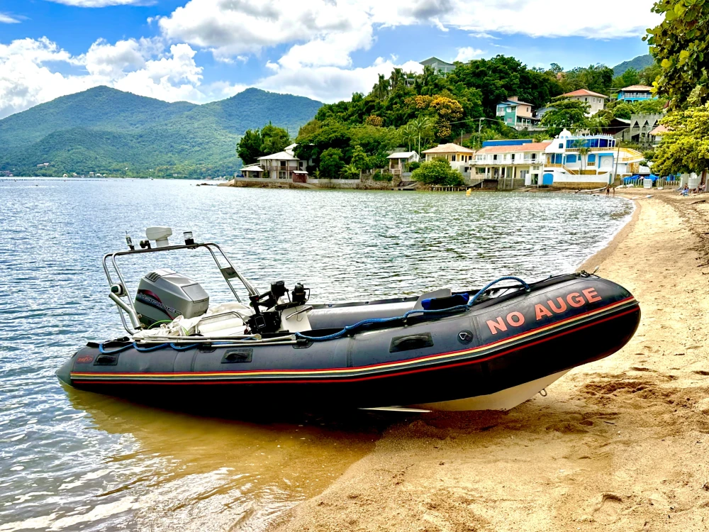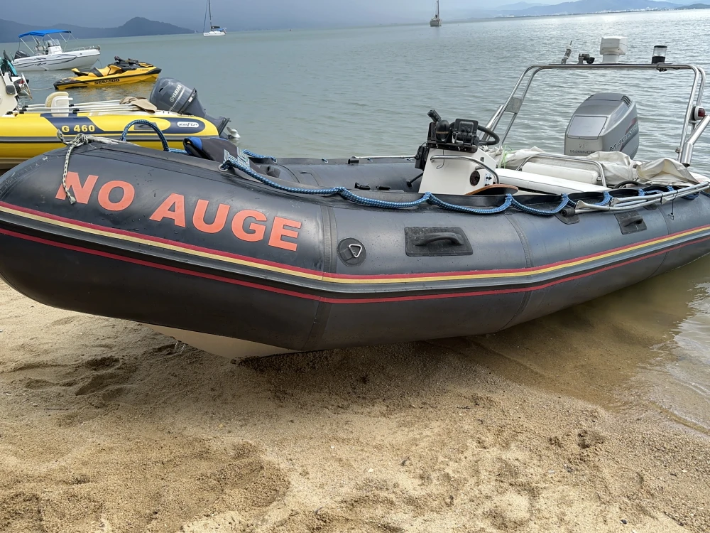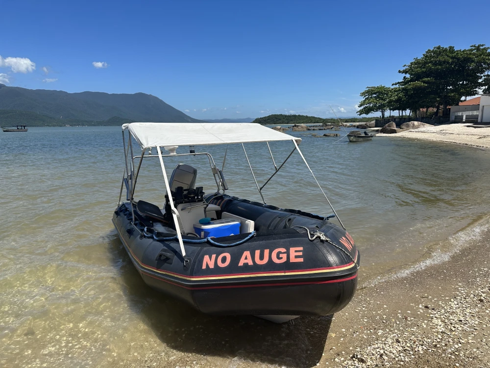 Sou o 3º dono deste barco - era peça de colecionador de um dos proprietários da Zefir, se transferindo para meu tio, do qual adquiri ha 2 anos. O barco e motor ainda não bateu 100 horas rodadas, unico motor do barco até hoje, ainda está lacrado. Manutenções costumam ser feitas a cada ano, mesmo com pouquissimo uso do barco, motor 2 tempos que depois de meses liga na primeira virada de chave. Peça única de borracha na cor preta (neoprene hypalon - atualmente utilizado apenas para veículos militares) - o único de seu tipo, oferece uma excelente experiência para pesca, passeios e esportes aquáticos. Possui câmara para abrigar iscas vivas. Comporta 9 pessoas - 8 passageiros + 1 tripulante. Seu motor de 90hp da Mariner, esta devidamente revisado, e mesmo sendo 1994, 2 tempos, está em perfeito funcionamento, com uso de apenas 98 horas, está em condições excepcionais de cuidado, ainda lacrado. Casco e Deck: Construídos em fibra de vidro laminado com resina de poliéster ortoftálica, reforçada com tecido Biaxial de 1400 g/m2, acabamento em gel branco com tratamento anti-UV, isoftálico com NPG, manta de vidro de 450 g/m2. Longarinas do casco transversais e longitudinais como cavernas Tecido: confeccionado com trama interna de poliéster de 1100 Decitex emborrachado com um composto a base de Hypalon e Neoprene aumentando assim a sua durabilidade e resistência. Acessórios originais 01 Par de Remos. 01 Fole de Enchimento. Kit para suporte de varas de pesca.