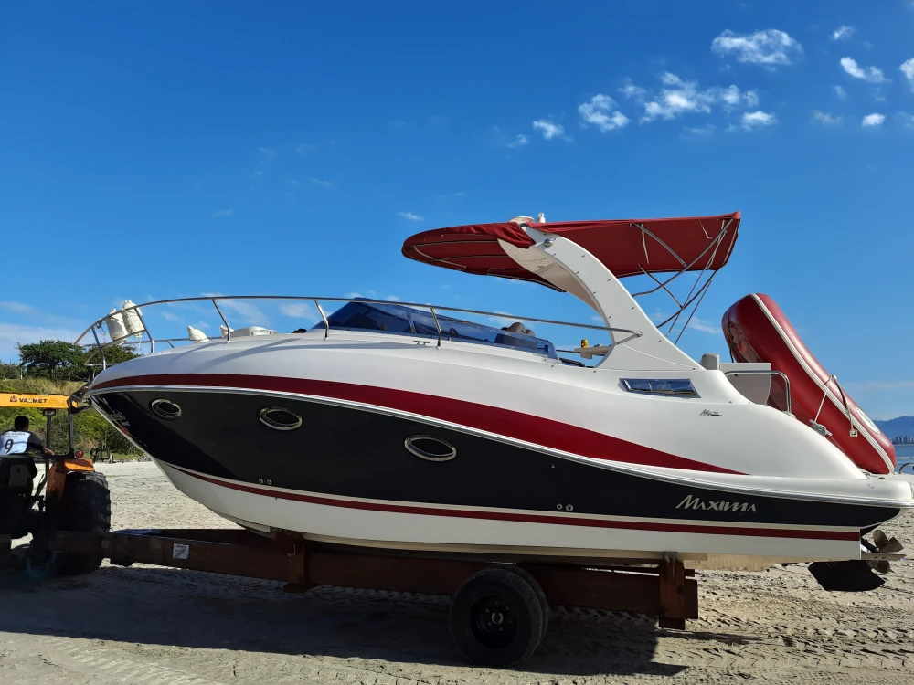 Lancha Máxima Max 280 2013 único dono Motor Mercruiser 8,2 208h de uso Chuveiro água quente e fria Ar condicionado tomada de cais Popa estendida, maior barco da categoria Tanque de combustível 350l Tanque água doce 300l Fechamento total