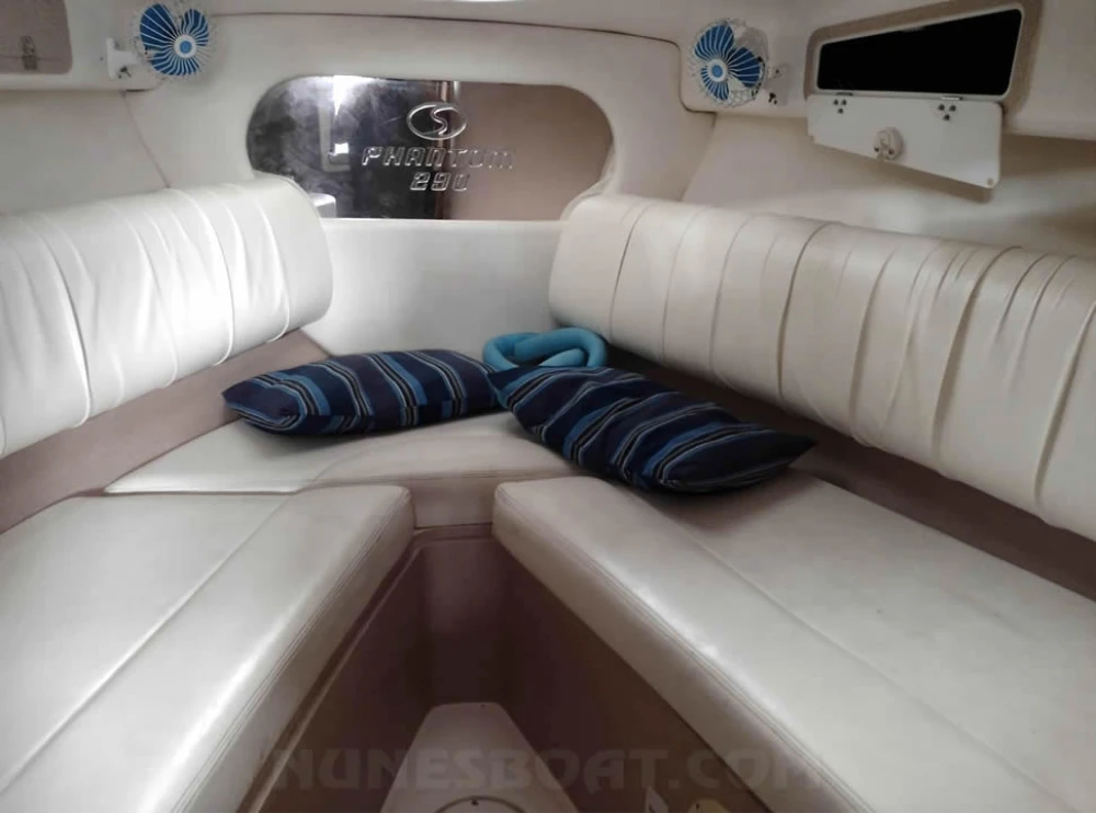 CÓD 4460 PHANTOM 290: schaefer yachts, 2004, 2x mercruiser 1.7 120hp, diesel, 100hs de uso, 27 top e 16 cruzeiro, rabetas alpha one, âncora, antena de vhf, bomba de água doce, (2) bomba de porão, bússola, buzina, capota, carreta de encalhe, chuveiro de popa, (10) coletes, (4) defensas, direção hidráulica, flap hidráulico, geleira, gps c/plotter, rádio vhf, sanitário elétrico, som, sonda, teca original, (3) ventiladores... F/c. Nunes (13)99706-0395