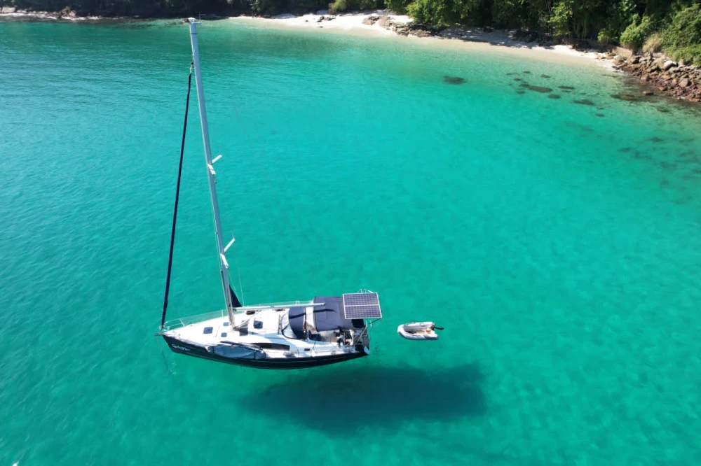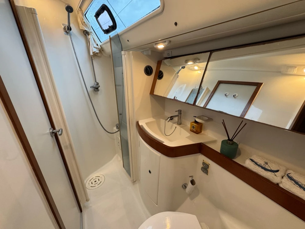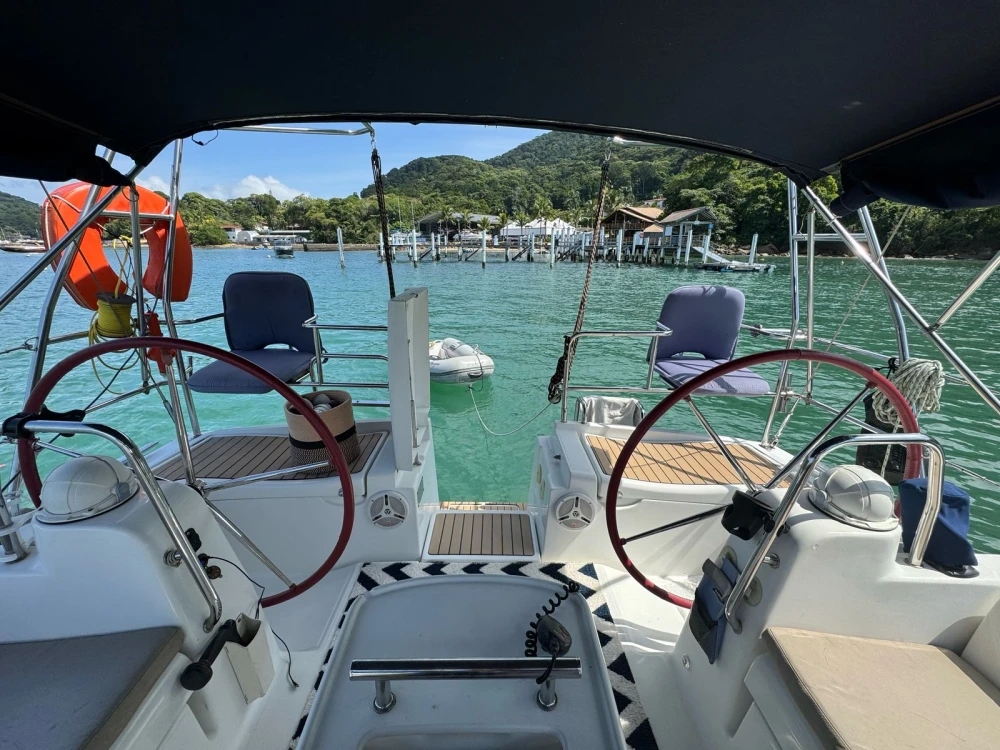 R$ 1.220.000,00 Beneteau Oceanis 40 Ano: 2008 Calado leve 1,70m Calado carregado 1,90m Versão 2 cabines, 2 banheiros Fundo e costado feito em abril/2022 Estaiamento: Todo trocado em jul/2023, peças originais Zpars (França), serviço feito pelo Renato (Nautos) Motorização Yanmar 40 hp pé de galinha 2400 hs Hélice fixa 3 pás Revisão Motor mar/24 Velas Grande Nova (jul/23) c/ enrolador: Quantum Sails Genoa Nova (Jul/23): Quantum Sails Genoa reserva BK sails (outubro 2021) Enrolador de Genoa Instrumentos Ray Marine Ecobatímetro Estação de vento Piloto Automático Gps Plother C90 Acessórios Dog House (2021) Bimini 2 Bússolas Targa com 2 placas solar de 330 W Motor de popa Mercury 5 hp (outubro 2021) Bote inflável Singra Boats 2,80m (Outubro 2021) Tv lcd e Sistema de som Cafeteira / Microondas / 2 geladeiras Fogão 2 bocas c/ forno 2 botijões de gás P5 Âncora com 50 m de corrente + 30 m cabo Elétrica Ar condicionado 12000 BTUs Gerador Mase 2,5 Kv (Revisão gerador agosto/2021) Guincho novo Italwinch (abr/24) elétrico com contador de corrente 3 baterias lifepo4 105ah serviço 1 bateria 115Ah motor 1 bateria 80Ah gerador Carregador de bateria Inversor Salvatagem 10 defensas Balsa Salva-vidas 6 pessoas (validade vencida) Documentos em dia