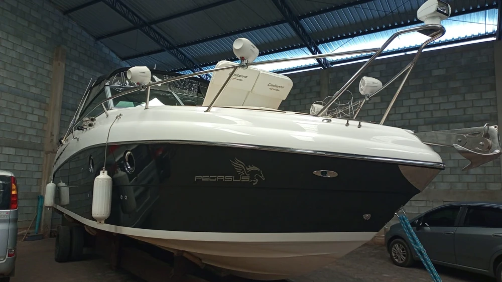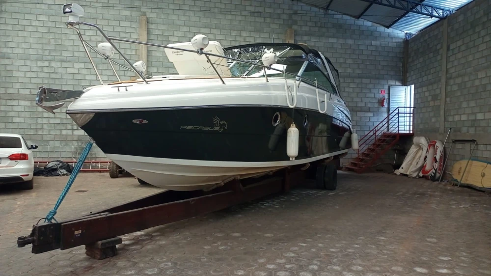 Cimitarra 34 Ano: 2014 2 x Volvo D3 200Hp Horas de uso: ? Rabetas Duo Prop Gerador Ar condicionado Carreta de encalhe Boiller de água quente Tapeçaria nova Pintura ok Fechamento total Gps Sonda Vhf Som Frigobar Micro Fogão Guincho elétrico Última revisão: a 2 meses