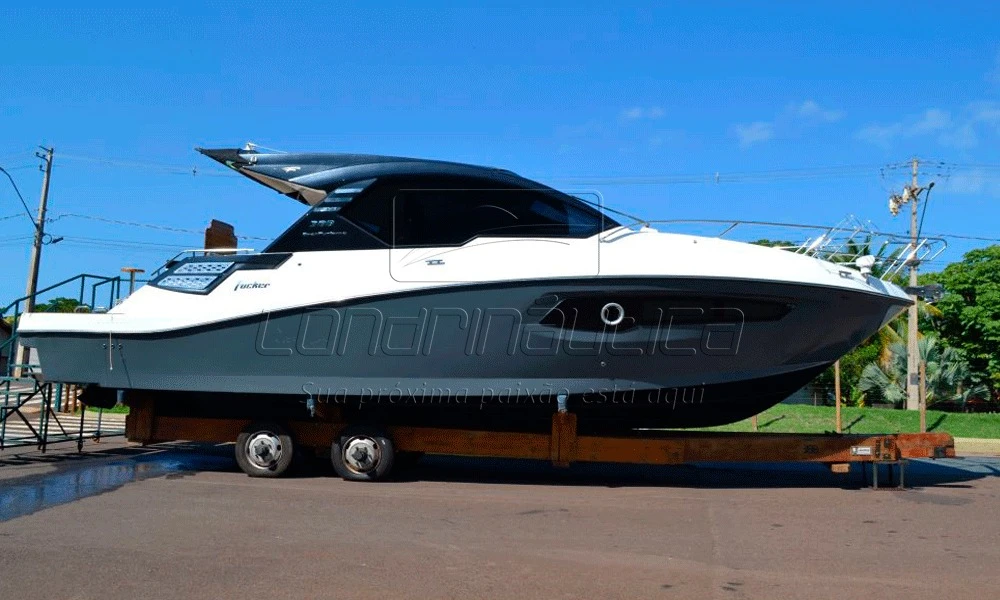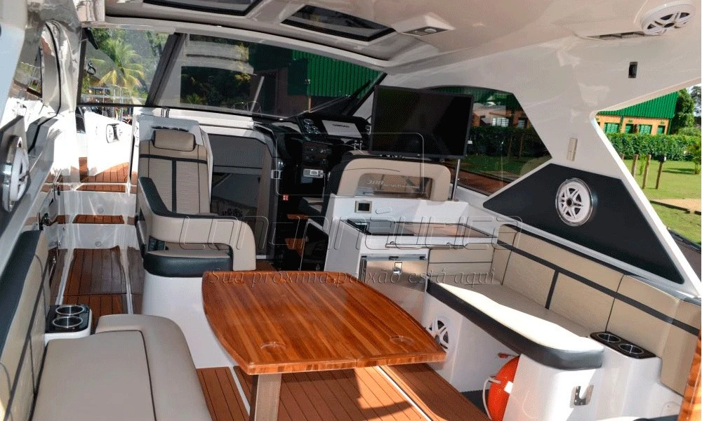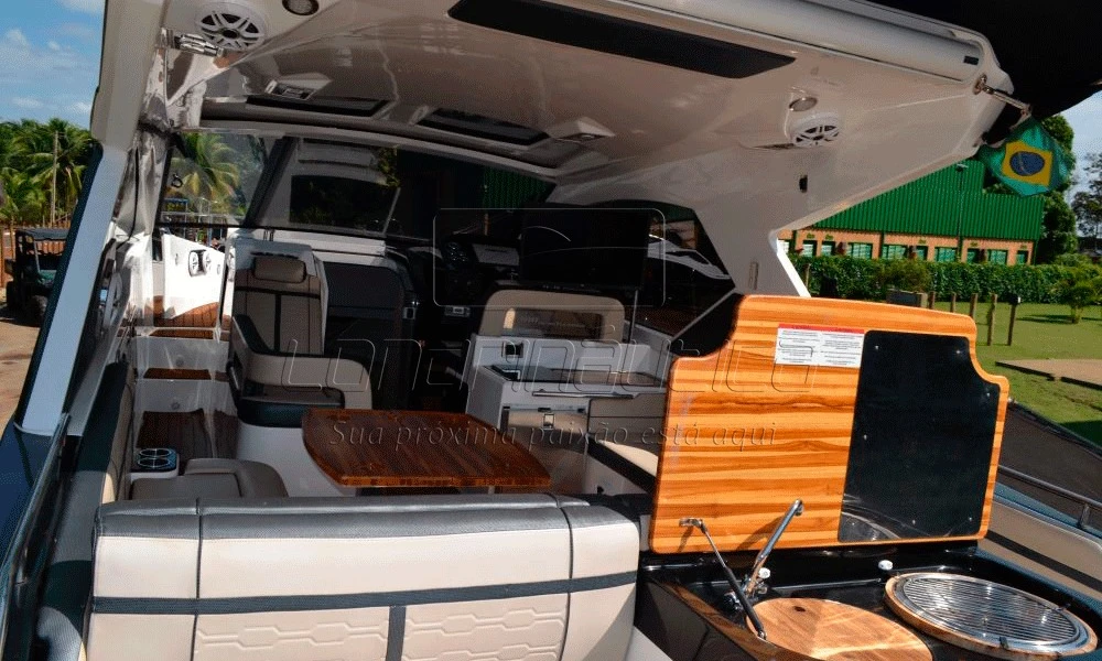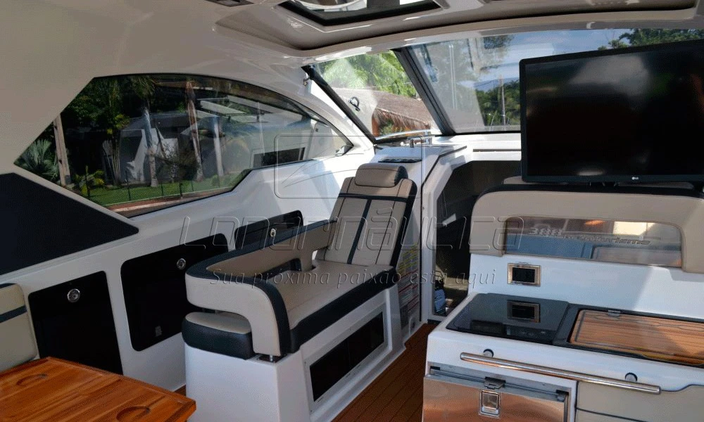 Focker 388 GranTurismo 2 x Mercruiser 300HP 2023, com 42 horas Joystick VesselView Simrad Farol de busca Suporte para defensas Tv 32 Lg cockpit Tv cabine Churrasqueira carvão 2 Banquetas Stobag elétrico Rádio vhf Som completo Flap Plataforma hidráulica Mesa de centro Geladeira Fogão de indução 1 boca Geleira Microondas Ar condicionado