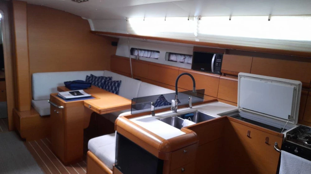 *ESPECIFICAÇÕES TÉCNICAS* Ano de construção: 2012 Construtor: Jeanneau S/A Modelo: Sun Odyssey 439 Material: Fibra de Vidro Comprimento total (m): 13,34 m Calado máximo (m): 2,20 m Boca (m): 4,24 m Área de navegação: Mar aberto Nº de passageiros: 11 Nº de tripulantes: 01 *LAYOUT* 03 cabines 02 banheiros com box isolado Sala Cozinha *MOTORIZAÇÃO* Motor de centro Yanmar Modelo: 4JH5E Ano de fabricação: 2011 Potência: 54HP Sistema de refrigeração direta/indireta Tipo de combustível: Diesel Capacidade dos tanques de combustível: 200 litros 1580 Horas Rabeta Yanmar – SD50 Hélice em aço inox *VELARIA / MASTREAÇÃO* 01 Mestra Dracon Quantum Sails 01 Genoa Dracon Techniq ue Mastro Sparcraft Pau de Spinner Sparcraft Retranca Sparcraft 01 enrolador marca Factor 02 catracas Harken 46 01 catraca eletrica Harken 40 Estaiamentos revisados em 2022 *INSTRUMENTOS / ELETRÔNICOS* Radar SIMRAD B&G – modelo HALO 24+ Rádio VHF Standart Horizon - modelo Explorer Rádio VHF ICON (totalmente independentes, inclusive antena) - modelo Command HM-195 02 Agulhas magnéticas Plástimo modelo France Piloto automático Raymarine – Hidráulico L&S modelo P70S Chartplotter B&G Vulcan V12 02 Multidisplay Raymarine - I70S 02 Multidisplay Raymarine - Piloto automático *ELÉTRICA* 01 Gerador Fischer Panda - 4200 FCB - 4,2 KVA 04 Baterias estacionárias Freedom - 115 AH 01 Bateria convencional HELIAR - 115 AH 01 Placa solar com controlador MPPT Canadian 365W 01 Carregador de baterias Xantrex True Charge 2 40AH 01 Inversor de energia GW – Marítimo 3000W 02 chaves gerais seletora 01 tomada de cais 01 painel energia solar epever triron 3210n *HIDRÁULICA* 02 tan?ues de água com 300l cada (total 600l de água) 01 boiler Quick 40 litros *ANCORAGEM / FUNDEIO* 01 Guincho Quick – 1000 W 01 âncora Rocna 25 KG - 50m de cabo 20mm e 70m de corrente 10mm 01 âncora Bruce 10 KG - 20m de cabo 20mm e 20m de corrente 10mm *SALVATAGEM / APOIO* Balsa inflável Modelo:ISO 6P - ano: 2022 - capacidade 06 passageiros Bote inflável Zefir Modelo: Wind F300 ano: 2023 - capacidade: 04 passageiros Motor de popa Mercury - 15HP - ano: 2023 02 Boia salva-vidas – Ferradura Plastimo 12 Colete salva-vidas Classe II Epirb – Validade 2030 *INFORMAÇÕES ADICIONAIS* Ar condicionado - Webasto FCF16,023 – 16.000 BTU´S Ar condiciobado - Icemaster IC6.5CH - 6.500 BTU´S Geladeira integrada Fogão duas bocas Microondas marca Consul 01 Smart TV Samsung 32" The frame 01 Smart TV LG 20" Multimedia Pioneer Antena marca Shakespeare tubular VHF Antena celular marca Shakespeare Antena para TV digital 02 auto falantes 02 auto falantes marca boss + subwoofer Bimini tecido solar.