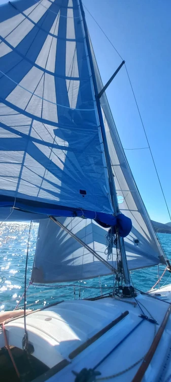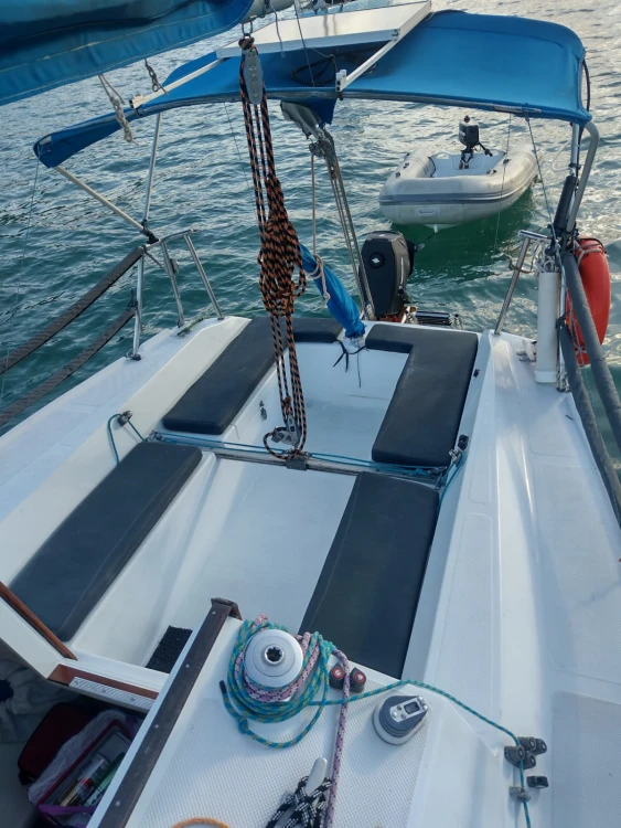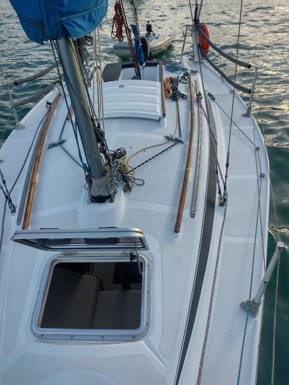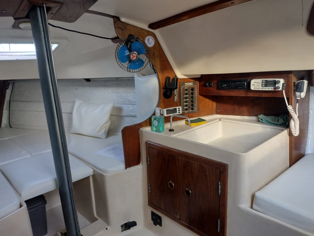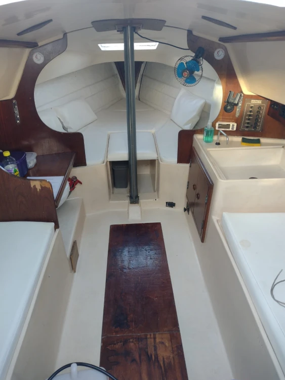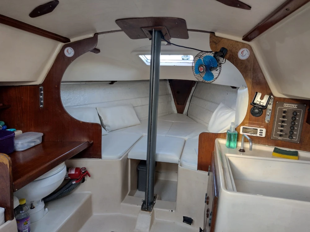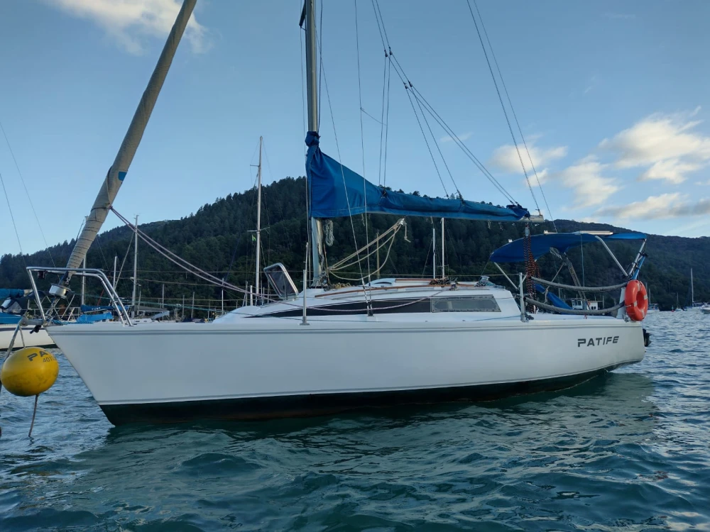 Modelo Fast 230; 23 pés; Ano Fabricação: 1986; Capacidade: 1+5 pessoas; Convés pintado em Dez/22; Casco aplicado tinta de fundo (cobre) em Dez/22; sem osmose; antiderrapante em ótimo estado; Cockpit pintado em Fev/24; Vela Mestra e Genoa Cognac prolan tri-radiais novas de Maio/23; Balão assimétrico Cognac novo de Junho/23; Enrolador de genoa; Pau de spi para balão simétrico; Estaiamento e brandais regulados em Set/24; Carrinhos de genoa, Traveller e backstay em ótimo estado; Salvatagem: 6 Coletes; 1 Boia salva-vidas; ancora bruce 7,5 Kg com 8m de corrente e 25m de cabo de seda; defensas; Capotaria: Bimini e Lazybag em bom estado; Toldos para cockpit removíveis com zíper nas laterais do lazybag; Estofamentos internos e externos novos de Fev/23; Vaso Sanitário manual novo de Dez/22; Elétrica e iluminação interna revisadas em Fev/23; Luzes de navegação; Placa solar 50W e bateria estacionária nova; Radio fixo VHF Uniden solara; antena VHF; Carregador USB; Motor Mercury 5hp rabeta longa revisado em Abr/25 com tanque externo 12L; Bote Tropical 2m reformado em Jul/22 com motor Toyama 2.6hp de Set/22 revisado em Abr/25 NÃO INCLUÍDOS e podem ser adquiridos por R$ 5K (bote + motor)