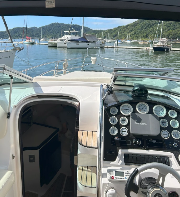 Barco em excelente estado, motores e parte elétrica revisados, guincho novo, ar condicionado, bote, microondas, frigobar, churrasqueira, materiais completos de salvatagem e contra incendio. 2 motores diesel 200 hp Mercruiser.