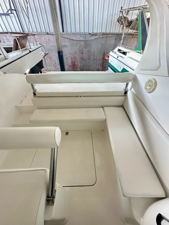 Possuímos a embarcação há 12 anos. Ela esta muito bem preservada e com manutenções em dia. Possui carreta e encontra-se em marina abrigada. Esta no litoral norte de São Paulo em São Sebastiao. Não aceitamos permuta somente pagamento a vista. Combustível gasolina.